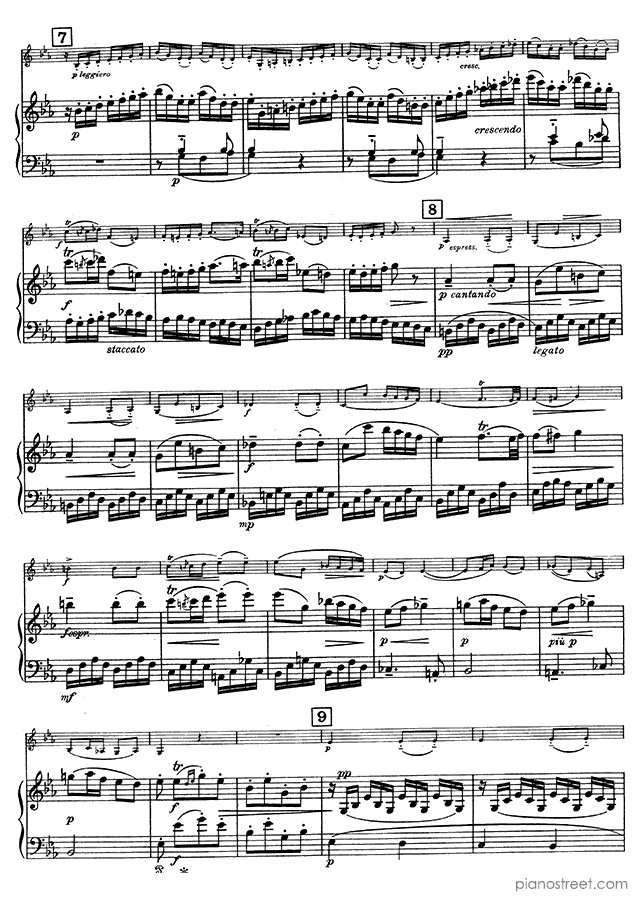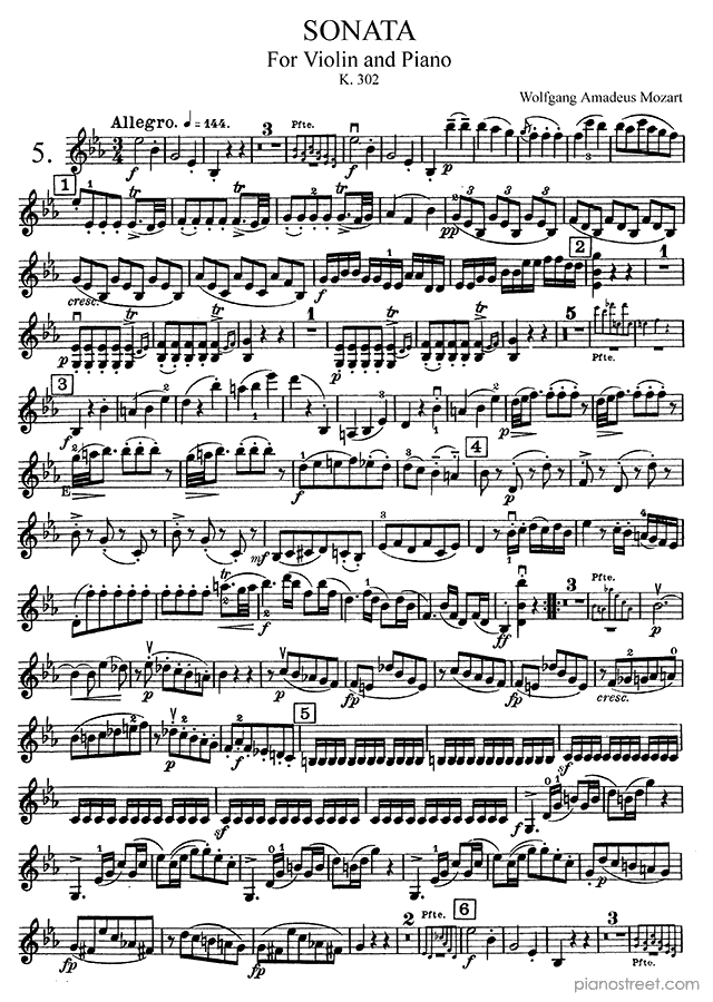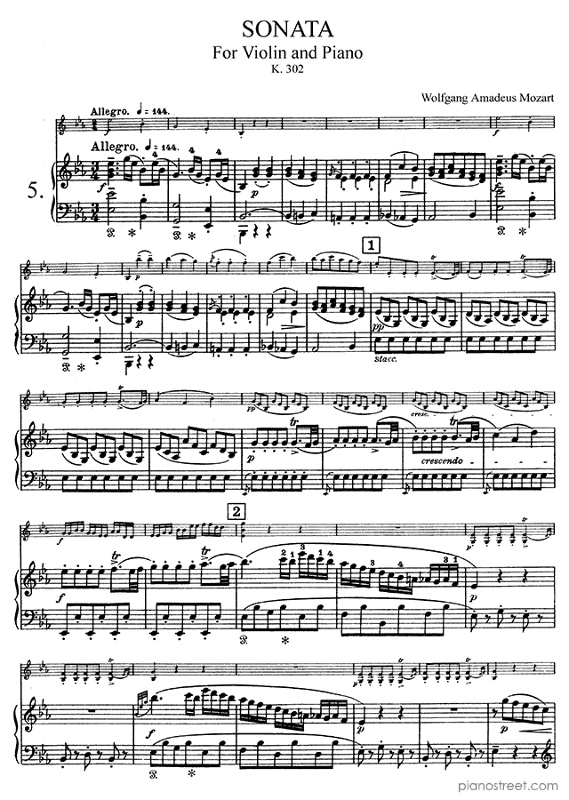 Classical piano sheet music by Wolfgang Amadéus Mozart to download and print instantly: Sonata for Piano and Violin K. 302 in the key of . Level 8+, compositional type: Chamber music