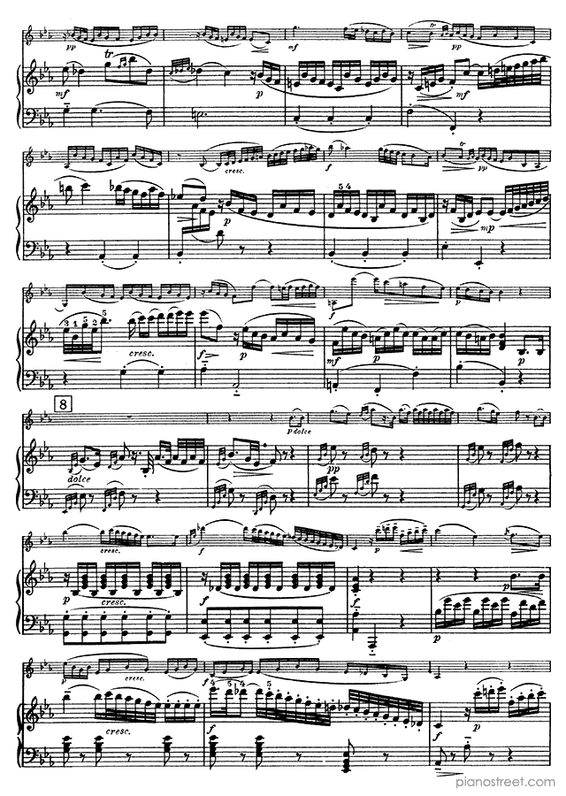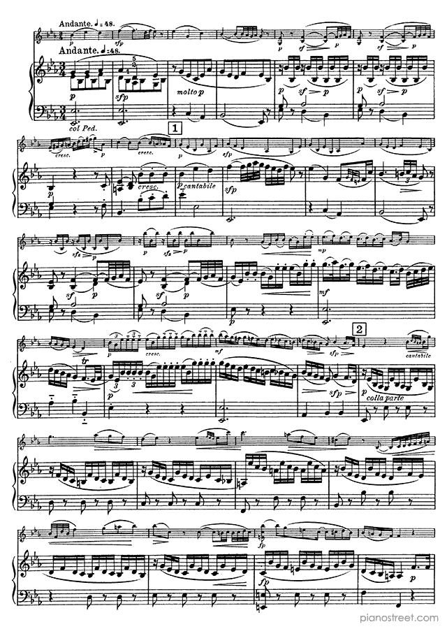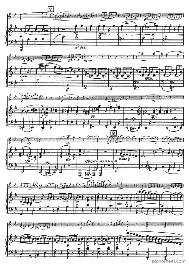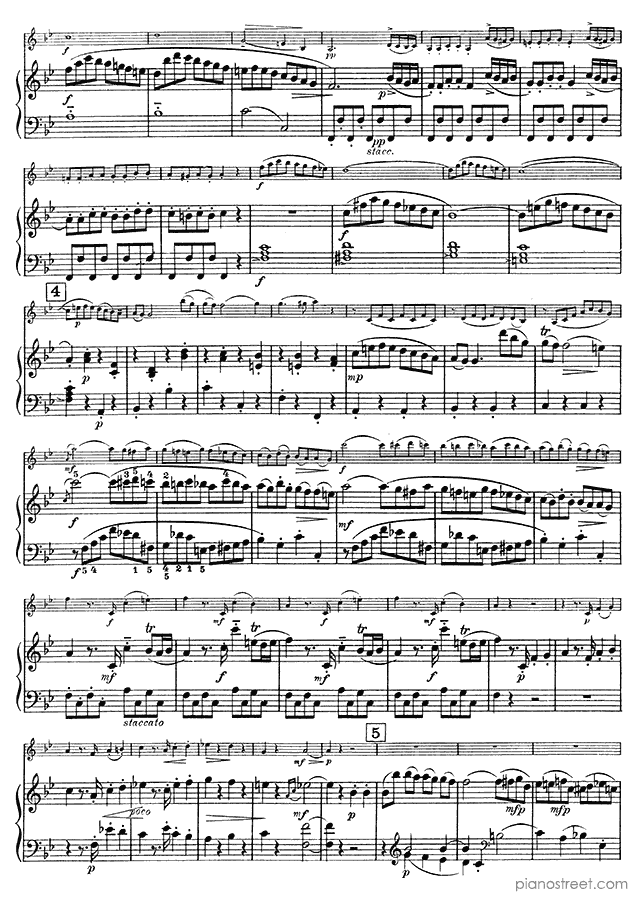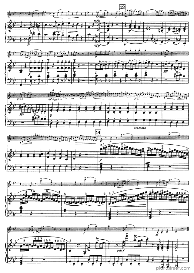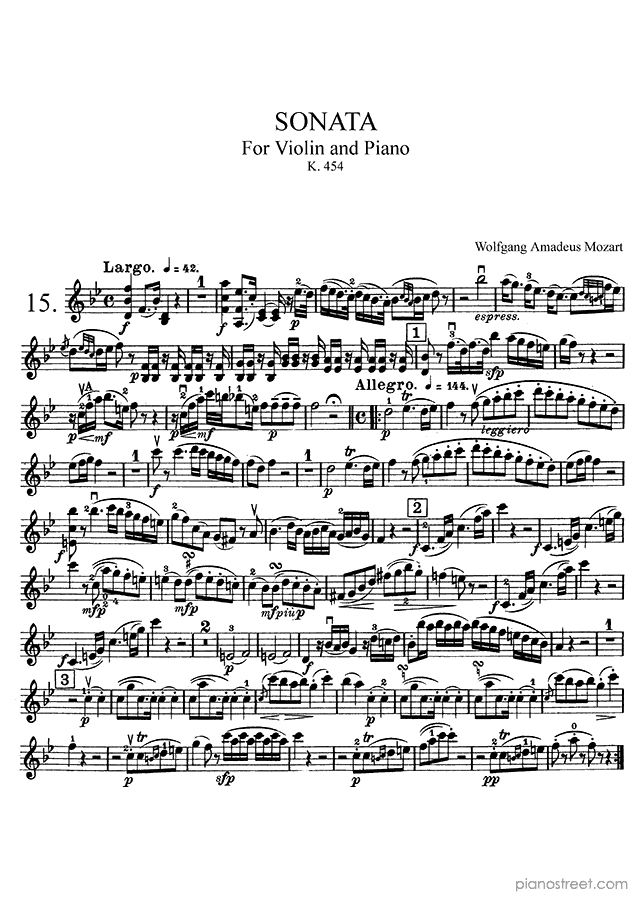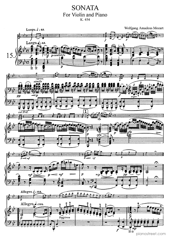 Classical piano sheet music by Wolfgang Amadéus Mozart to download and print instantly: Sonata for Piano and Violin K. 454 in the key of . Level 8+, compositional type: Chamber music