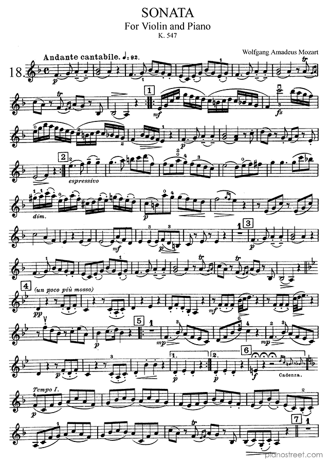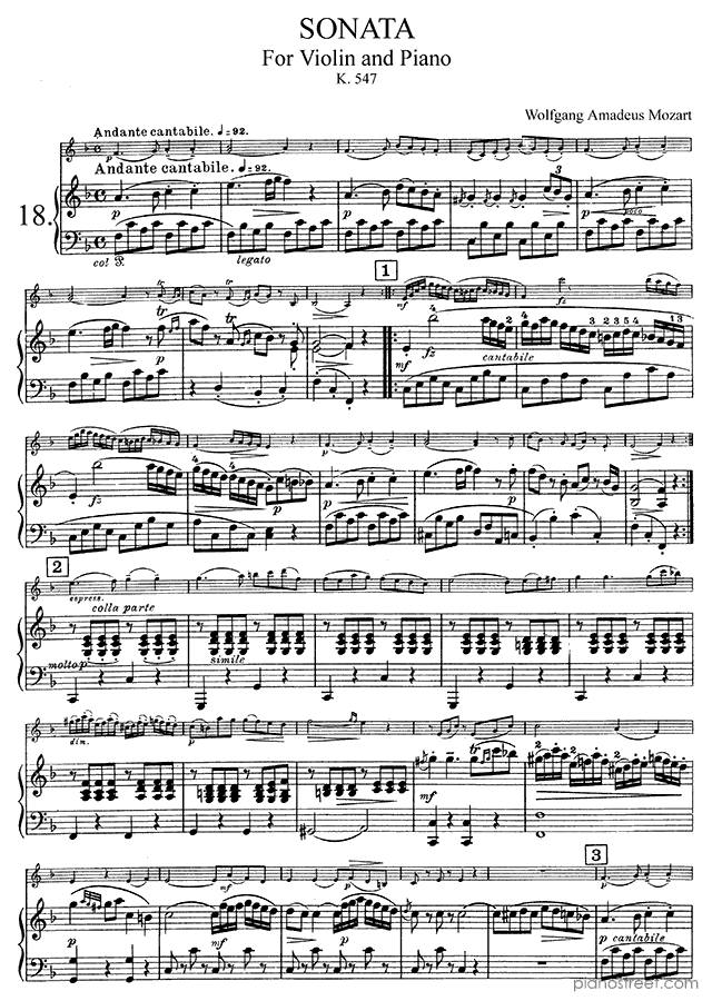 Mozart: Sonata for Piano and Violin K. 547 in F Major . DOWNLOAD piano sheet music from Piano Street digital sheet music library.