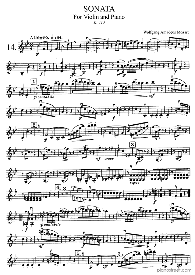 Classical piano sheet music by Mozart to download: Sonata for Piano and Violin K. 570 in the key of This piece has difficulty level 8+ in the category Chamber music