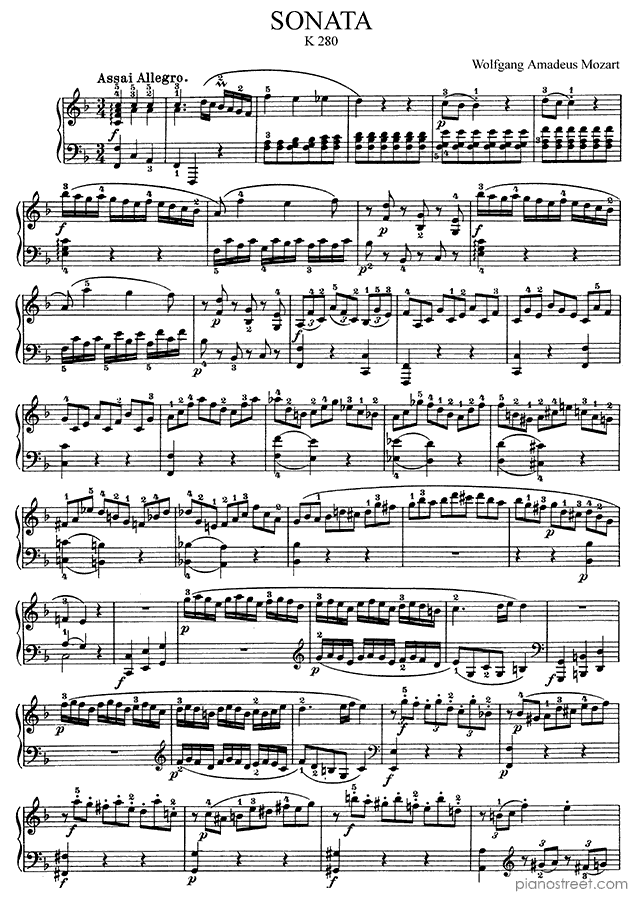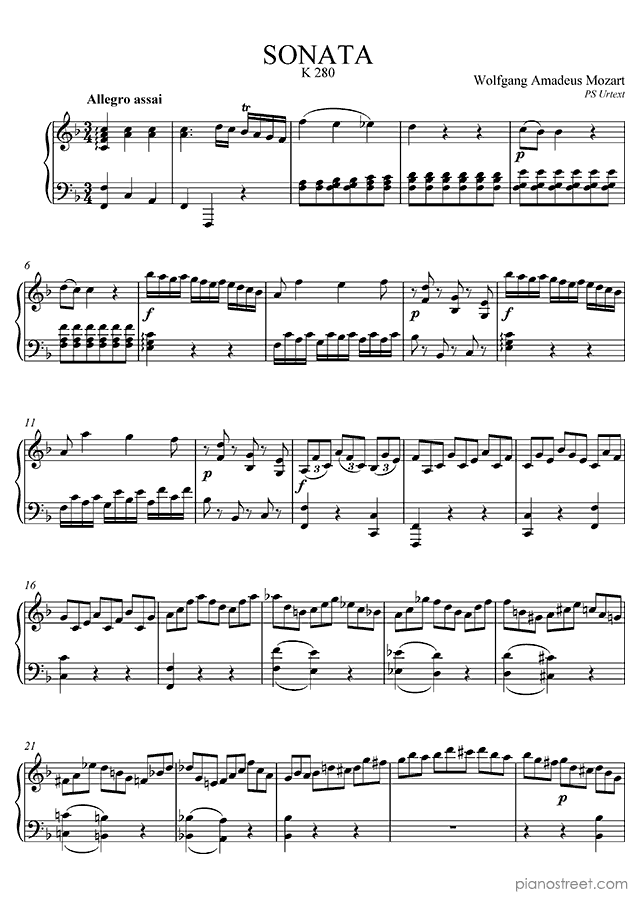 Sonata in F Major - K. 280 is a piano piece by the classical composer Wolfgang Amadéus Mozart who lived between the years 1756 and 1791.