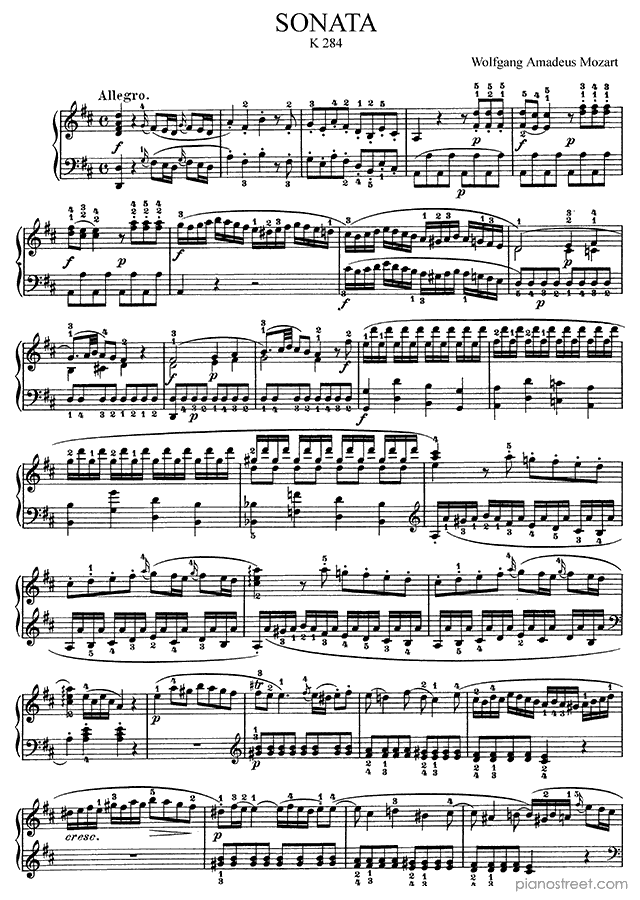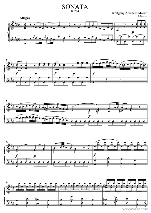 Classical piano sheet music by Mozart to download: Sonata K. 284 in the key of This piece has difficulty level 7 in the category Sonata