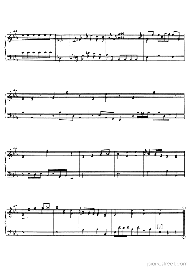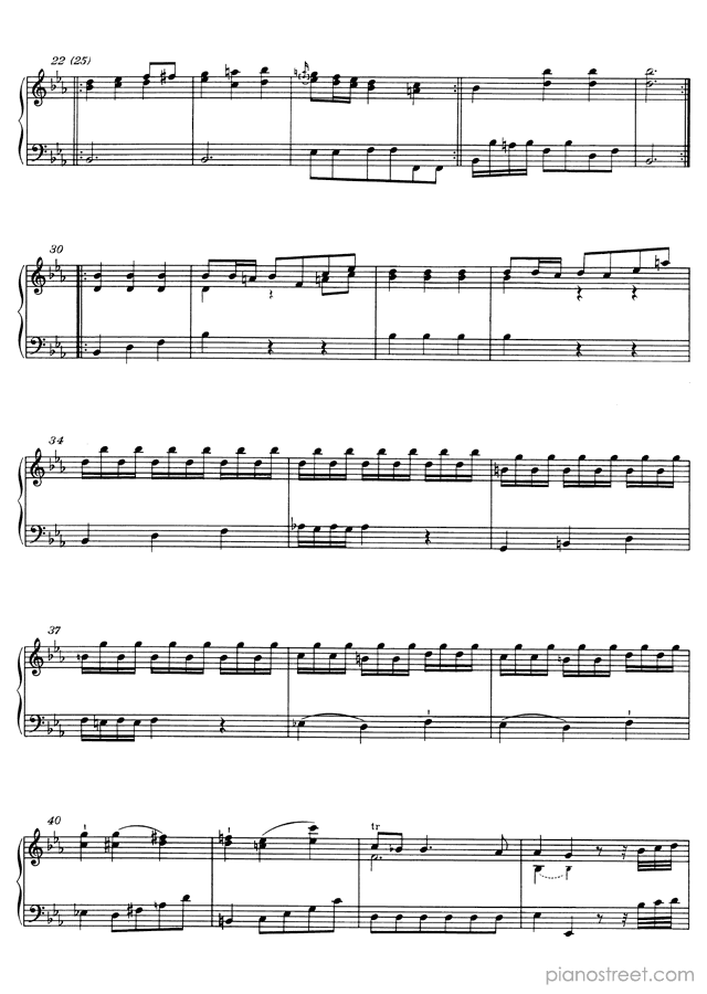 Classical piano sheet music by Mozart to download: Minuet in E-flat No. 29 in the key of This piece has difficulty level 4 in the category Piece