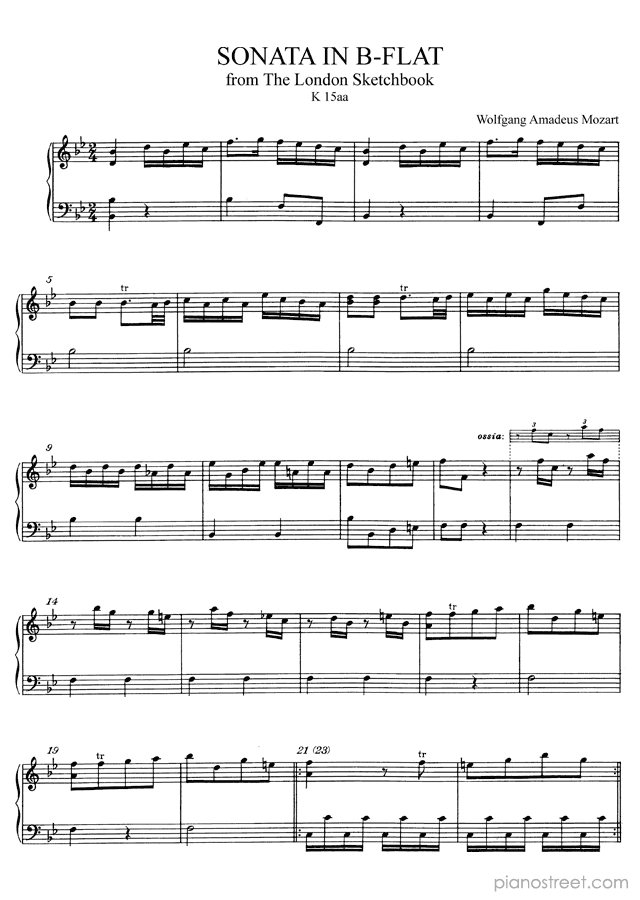 DOWNLOAD Sonata in B-flat in B-flat Major No. 27 by Wolfgang Amadeus Mozart (published in 1764) . High quality classical piano scores from the Piano Street sheet music library.