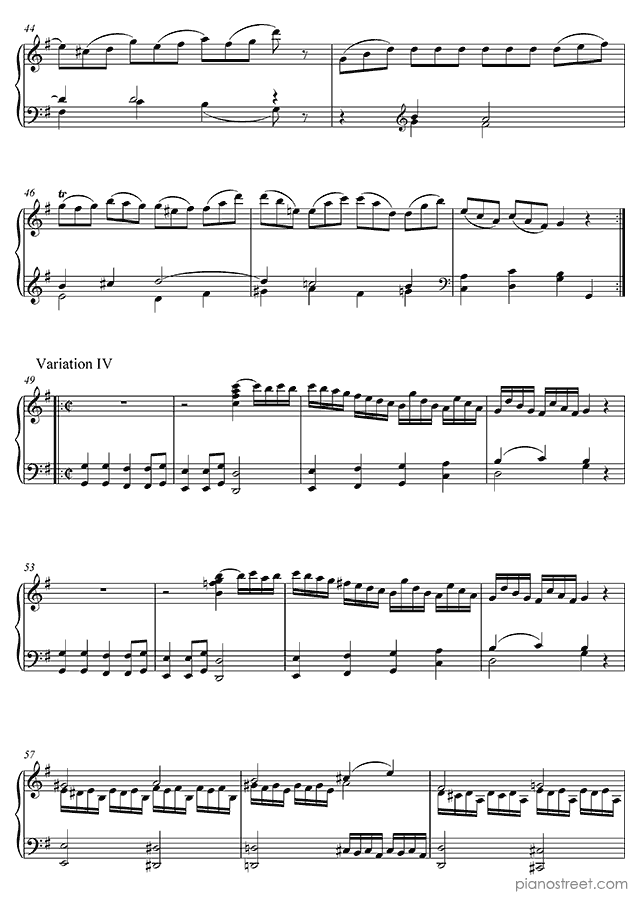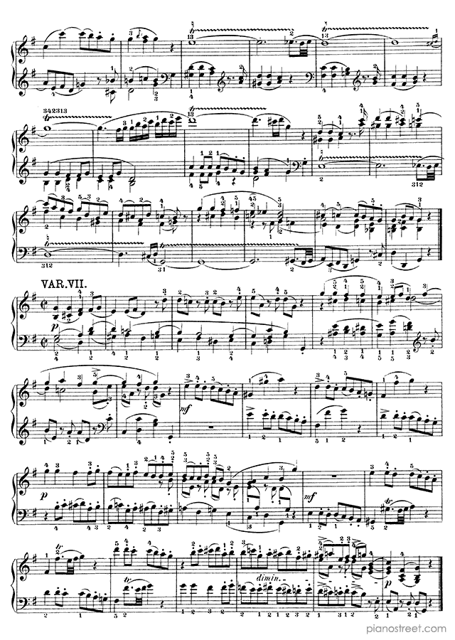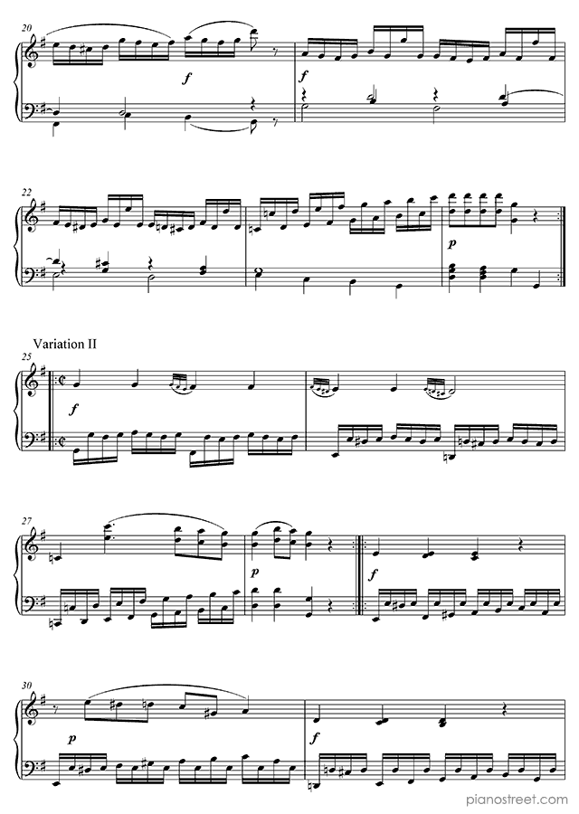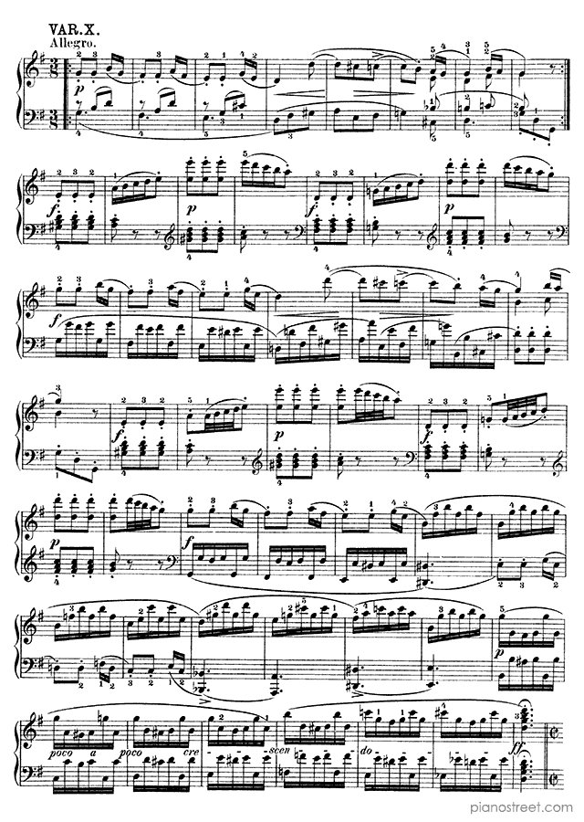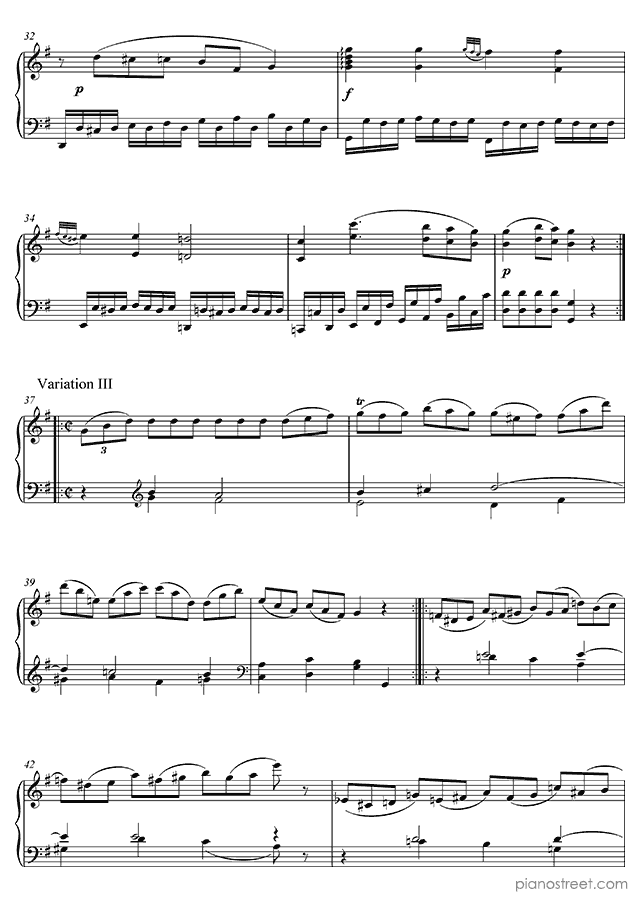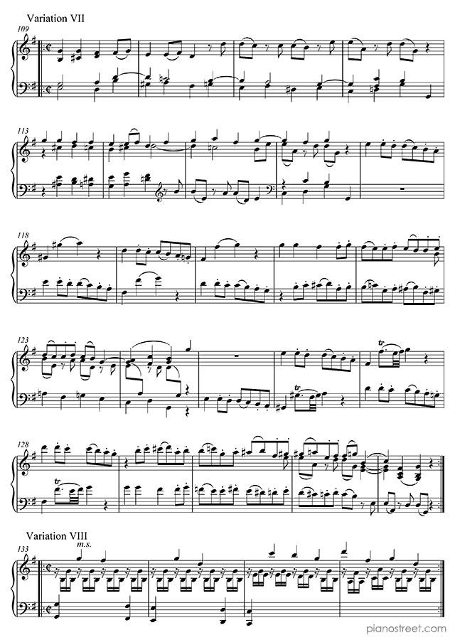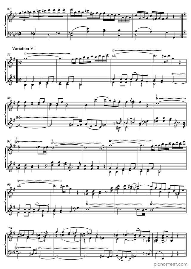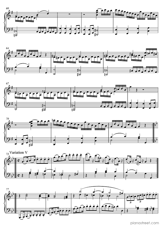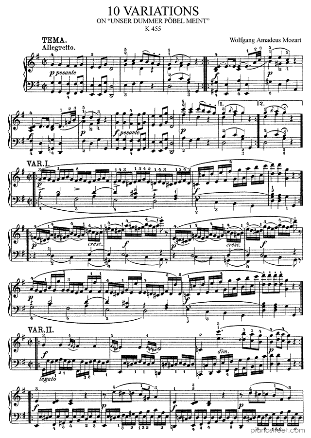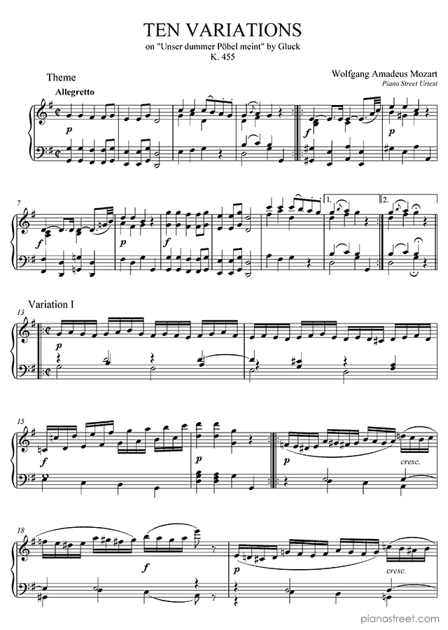 Classical piano sheet music by Wolfgang Amadéus Mozart to download and print instantly: 10 Variations on Unser dummer Poebel meint K. 455 in the key of . Level 8+, compositional type: Variations (published in 1784)