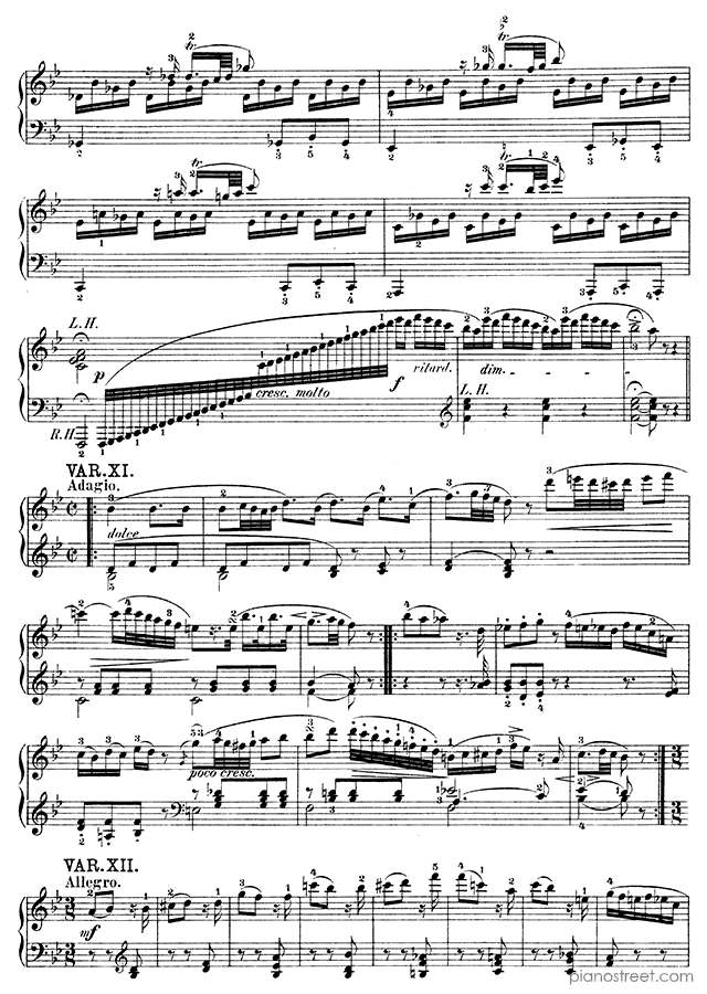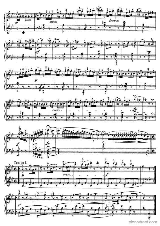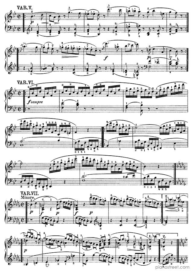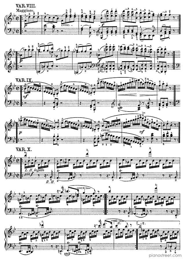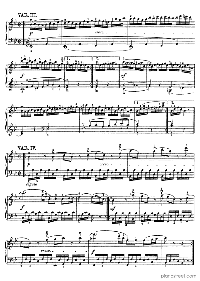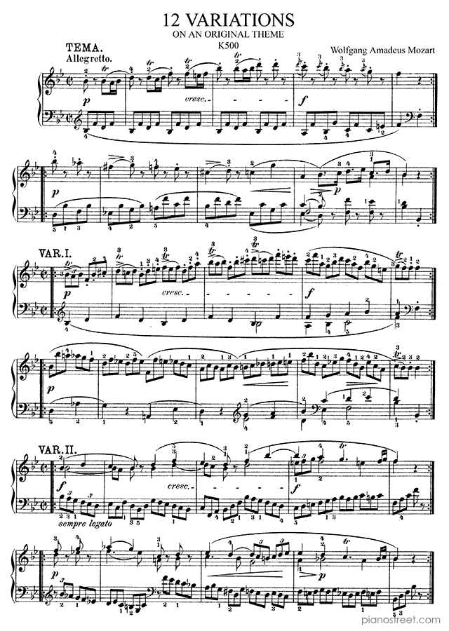 Piano sheet music and recordings. This piece is from Variations by Wolfgang Amadéus Mozart: 10 Variations on an original Theme K. 500 in B-flat Major (published in 1786) . Level 8, Period: Classical