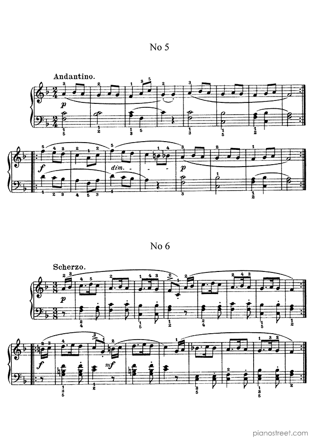 Müller: No 5 from Twelve little Pieces No. 5 in F Major . DOWNLOAD piano sheet music from Piano Street digital sheet music library.