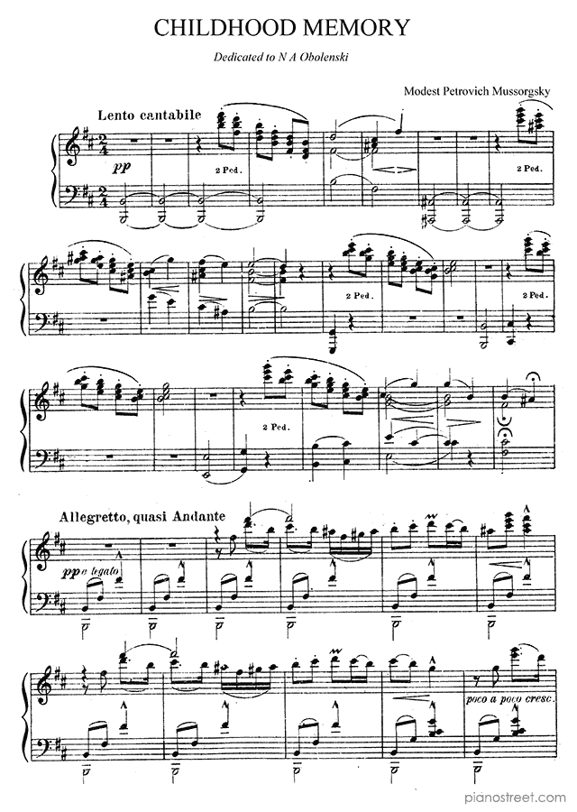Classical piano sheet music by Mussorgsky to download: Childhood Memory in the key of This piece has difficulty level 8 in the category Piece