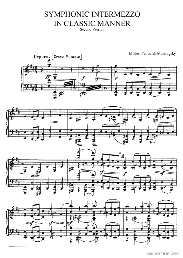 Modest Petrovich Mussorgsky: Intermezzo in the Classic Manner - Transcription in B Minor - piano sheet music to print instantly. This piece is level 8+ and was composed during the Late Romantic period.