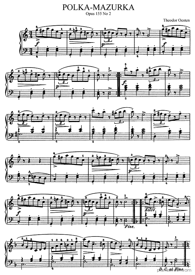DOWNLOAD: Theodor Oesten - Polka-Mazurka Op. 155 No. 2 in C Major ( by Oesten). Piano sheet music to print immediately or to view in mobile devices.
