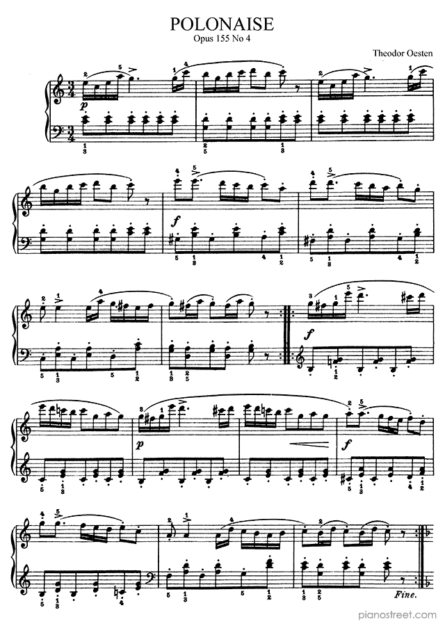 DOWNLOAD Polonaise in C Major Op. 155 No. 4 by Theodor Oesten. High quality classical piano scores from the Piano Street sheet music library.