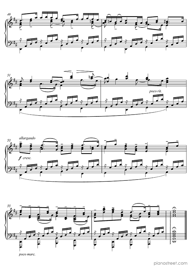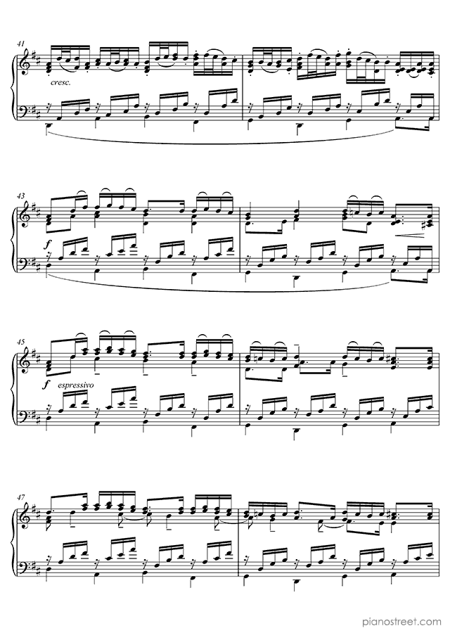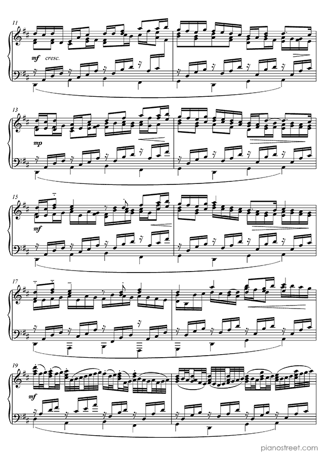 Pachelbel's most famous work, the beautiful and hypnotic canon in D never fails to fascinate its listener. The basso ostinato – a two-bar melody in the left hand - is repeated 28 times, but be prepared to want to go on playing it forever.