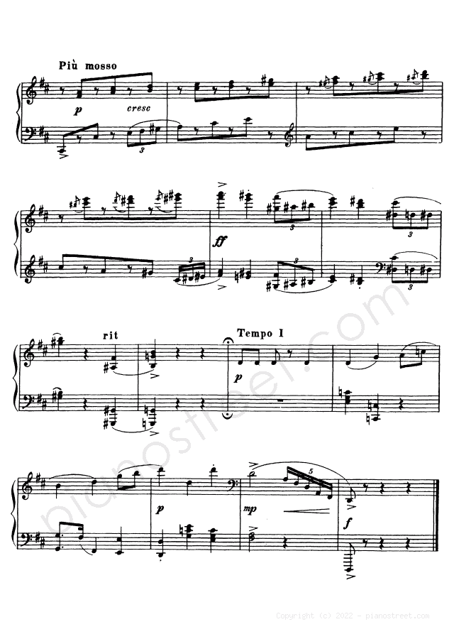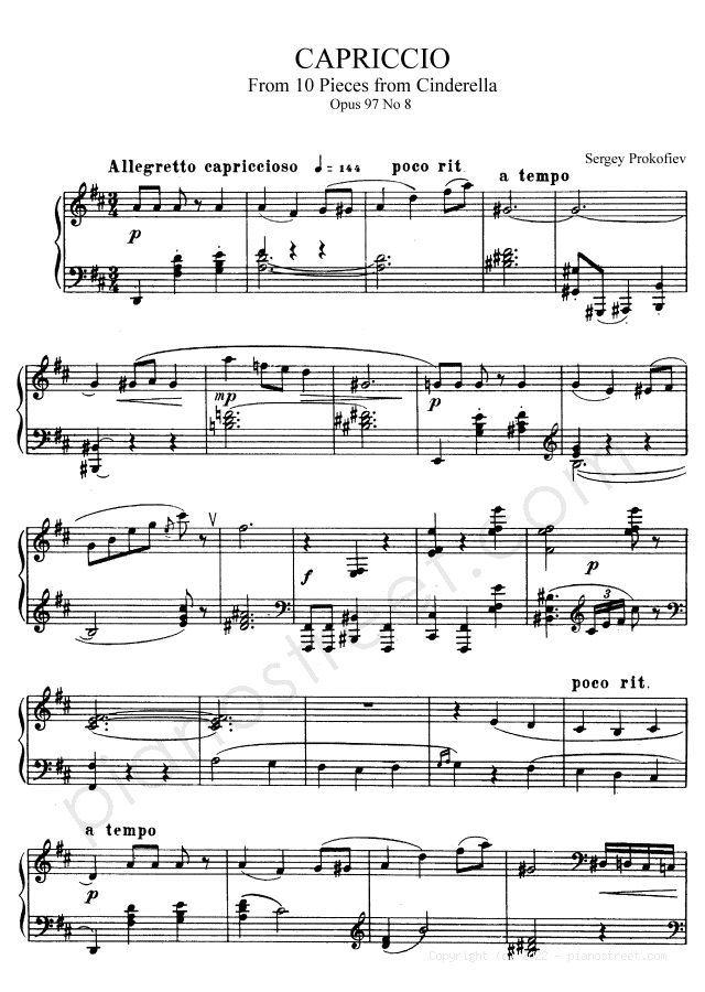 DOWNLOAD: Sergey Prokofiev - Capriccio Op. 97 No. 8 in D Major ( from Ten Pieces from Cinderella by Prokofiev). Piano sheet music to print immediately or to view in mobile devices.