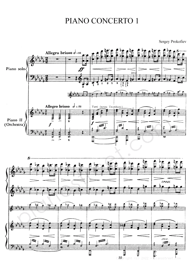 DOWNLOAD: Sergey Prokofiev - Piano Concerto 1 Op. 10 in D-flat Major ( from Concertos by Prokofiev). Piano sheet music to print immediately or to view in mobile devices.
