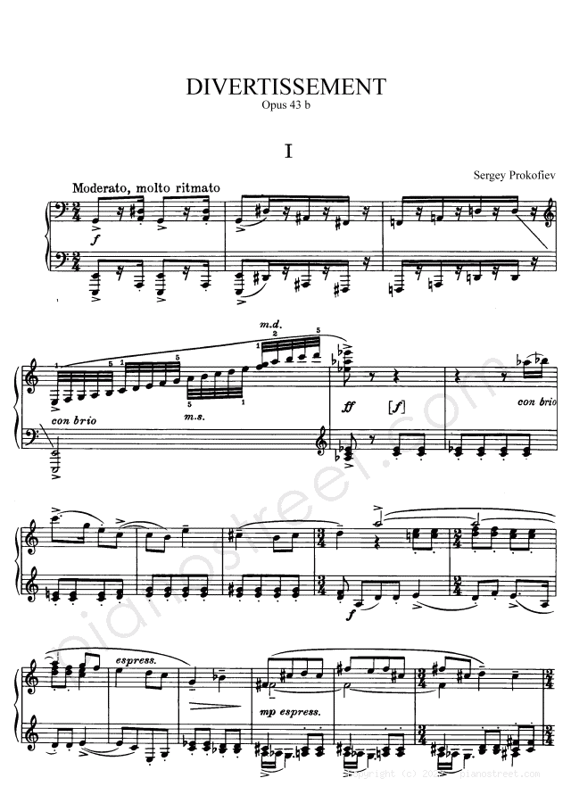 Classical piano sheet music by Prokofiev to download: Divertissement Op. 43 b in the key of This piece has difficulty level 8+ in the category