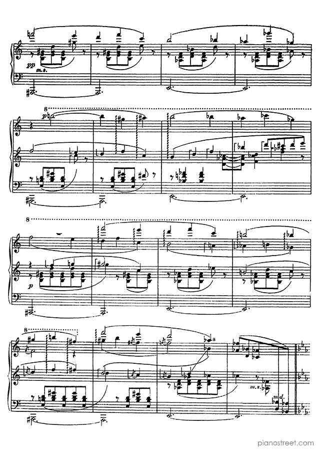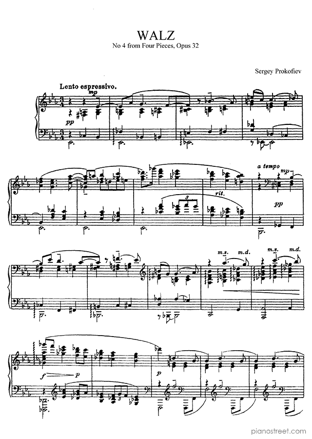 Modern piano sheet music by Sergey Prokofiev to download and print instantly: Waltz Op. 32 No. 4 in the key of . Level 8+, composition type: Piece (published in 1918)