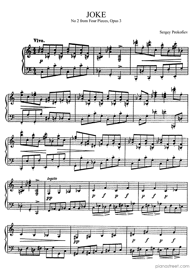 DOWNLOAD: Sergey Prokofiev - Joke Op. 3 No. 2 in C Major ( from Four Pieces by Prokofiev). Piano sheet music to print immediately or to view in mobile devices.