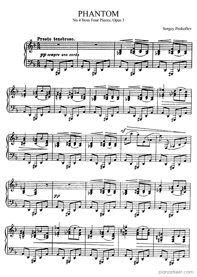 Phantom Op. 3 No. 4 in D Minor, a composition by the modern composer Sergey Prokofiev. The piano score of this piece was first published in 1911 and is part of Four Pieces by Prokofiev.