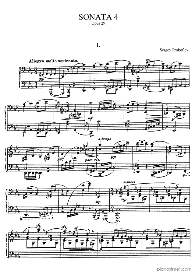 Prokofiev: Sonata 4 Op. 29 in C Minor (published in 1917) . DOWNLOAD piano sheet music from Piano Street digital sheet music library.