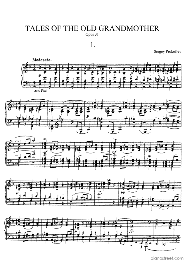 Tale in E Minor - Op. 31 No. 3 is a piano piece by the modern composer Sergey Prokofiev who lived between the years 1891 and 1953.