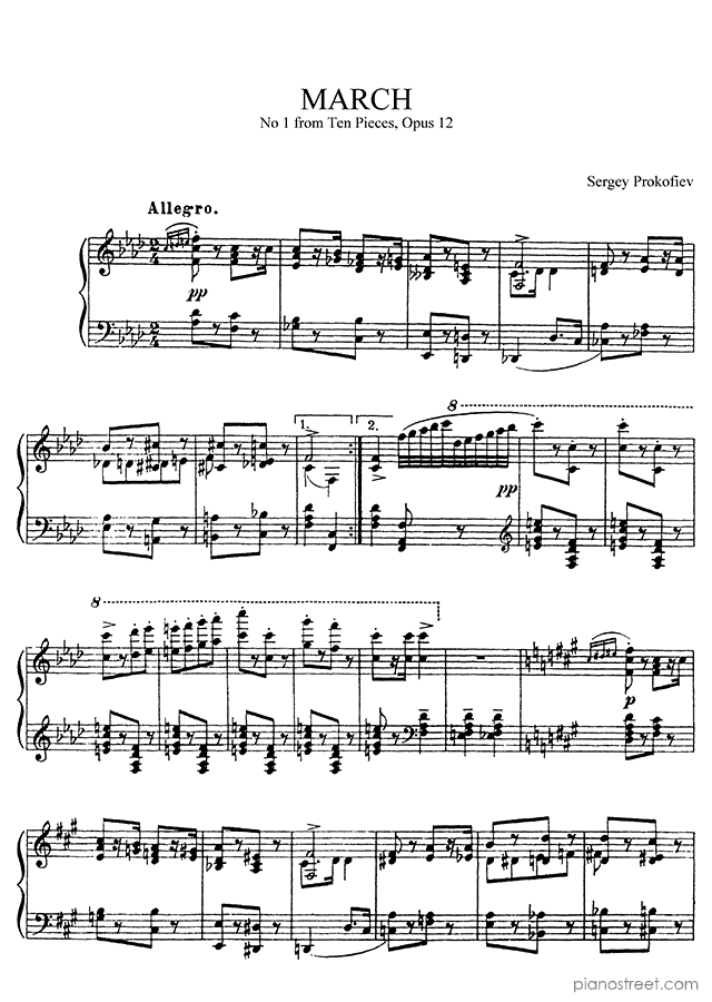 Prokofiev: March Op. 12 No. 1 in F Minor (published in 1913) . DOWNLOAD piano sheet music from Piano Street digital sheet music library.