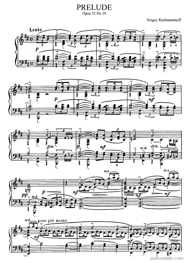 Prelude Op. 32 No. 10 in B Minor, by the late romantic composer Sergey Rachmaninoff. It was written during the Late Romantic period and is included in 13 Preludes by Rachmaninoff.