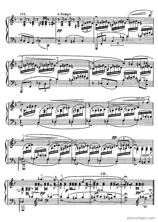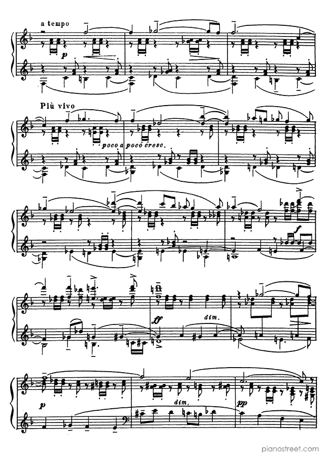 Downloadable piano sheet music from 13 Preludes by Sergey Rachmaninoff to print: Prelude Op. 32 No. 7 in F Major