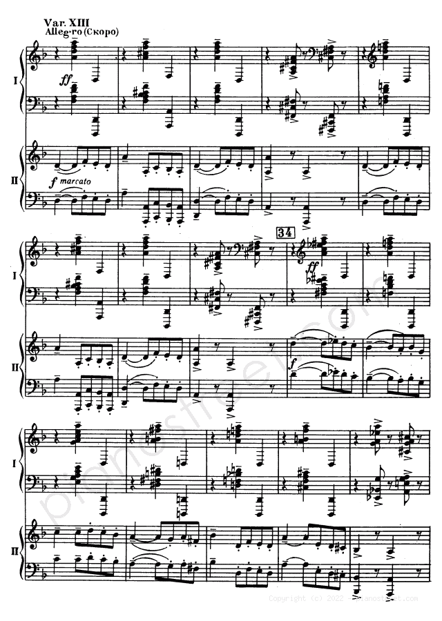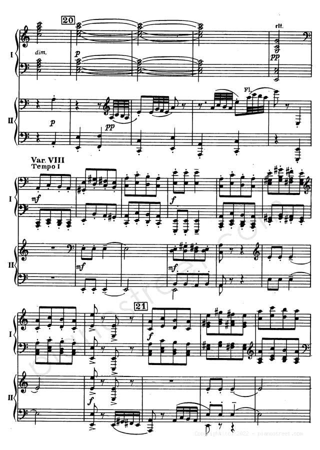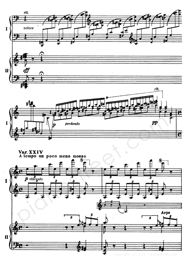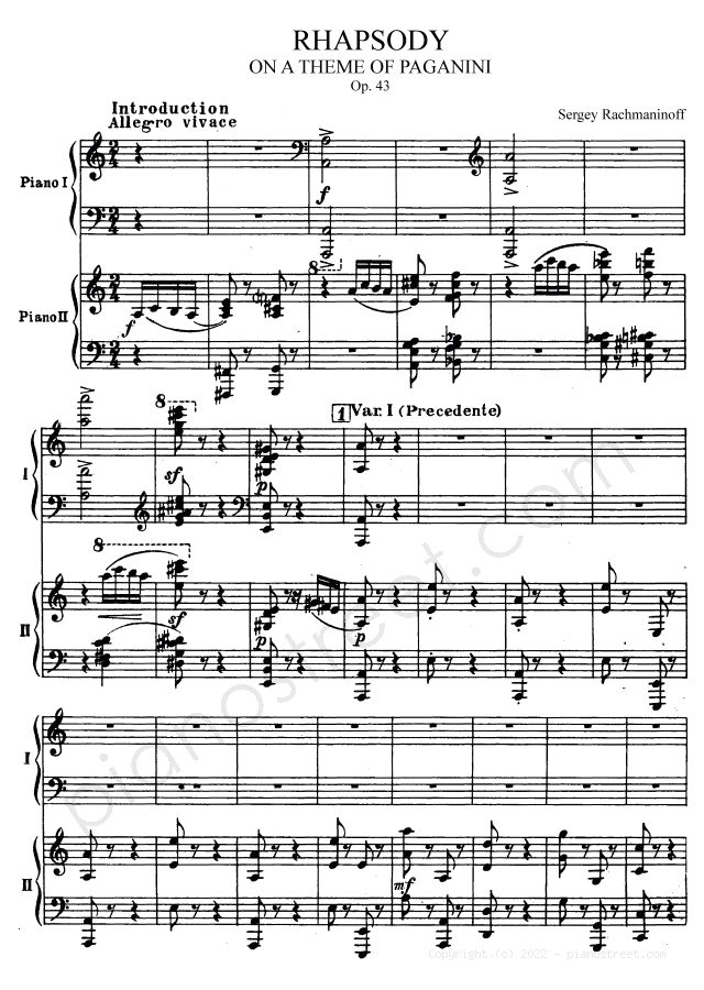 Late Romantic piano sheet music by Sergey Rachmaninoff to download and print instantly: Rhapsody on a Theme of Paganini Op. 43 in the key of . Level 8+, compositional type: Concerto (published in 1934)