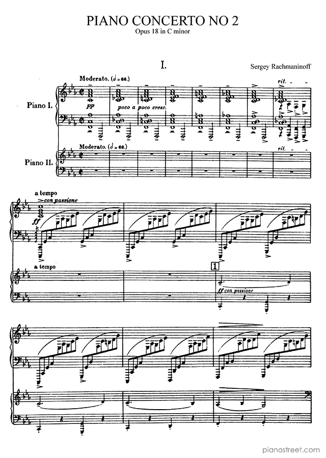Piano Concerto 2 Op. 18 in C Minor, a composition by the late romantic composer Sergey Rachmaninoff. The piano score of this piece was first published in 1901 and is part of Concertos by Rachmaninoff.