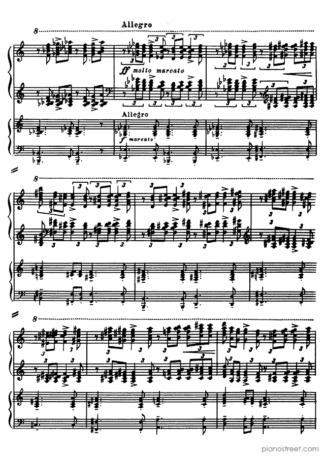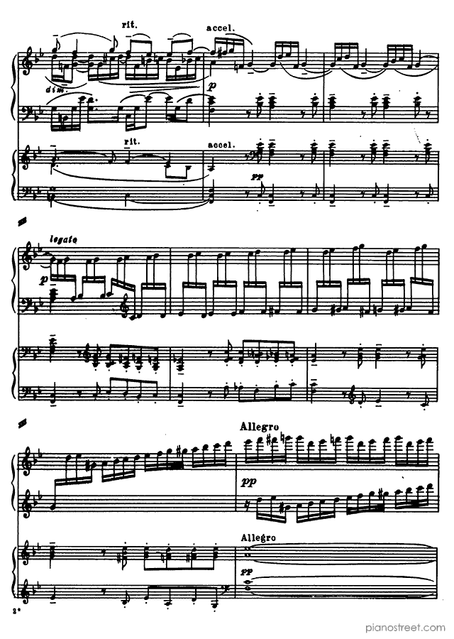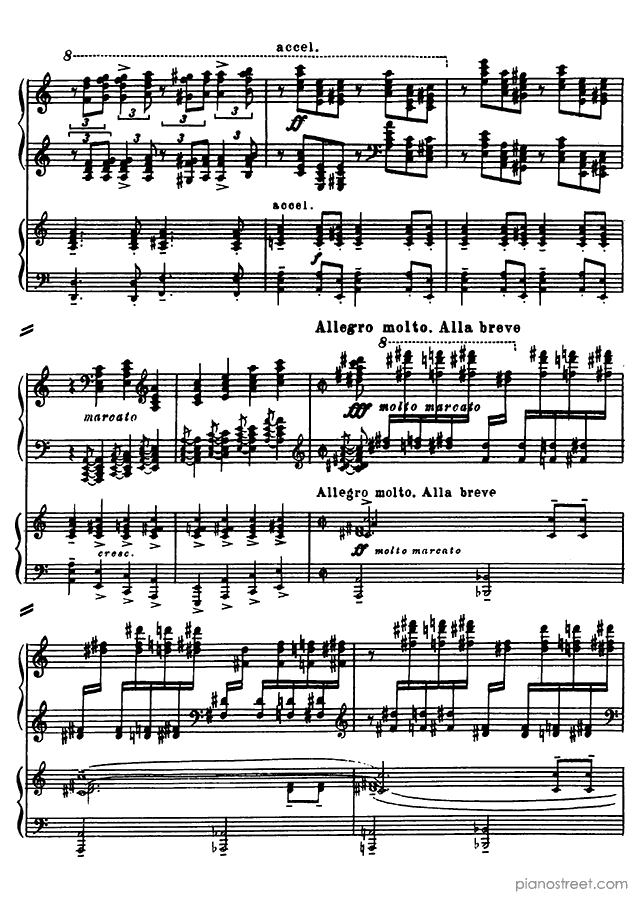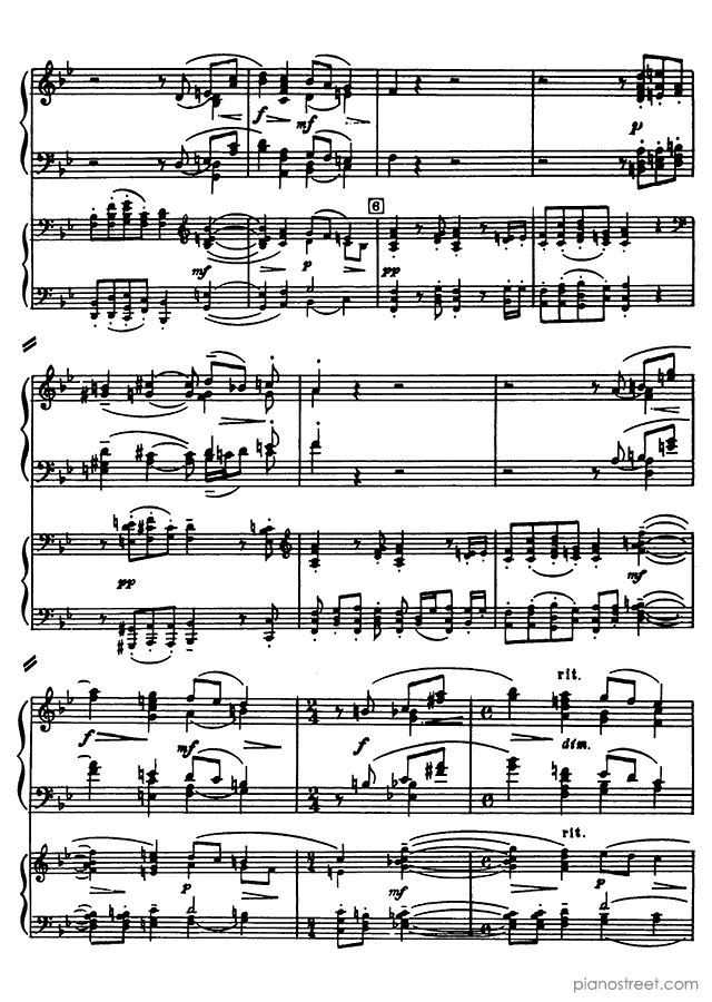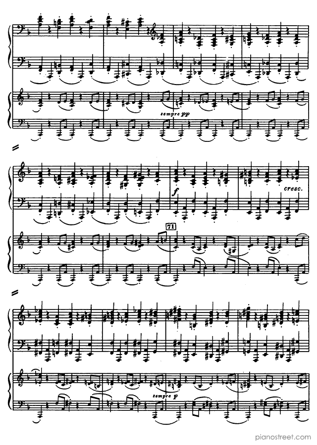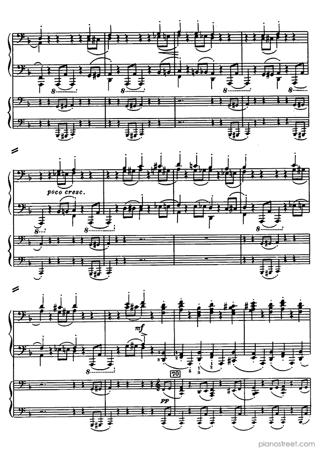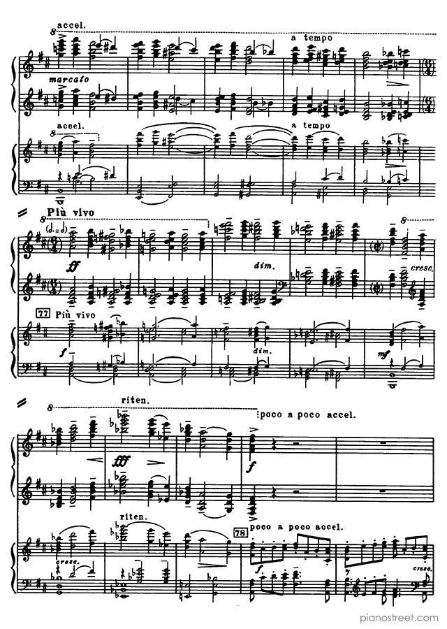 The piece ends with the four-note rhythm, sometimes interpreted as the composer's musical signature – "Rach-ma-ni-noff!" – because it is used in both the composer's Second Concerto and Second Symphony.