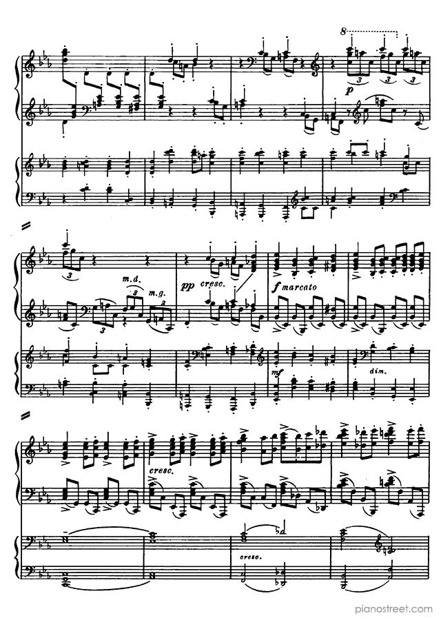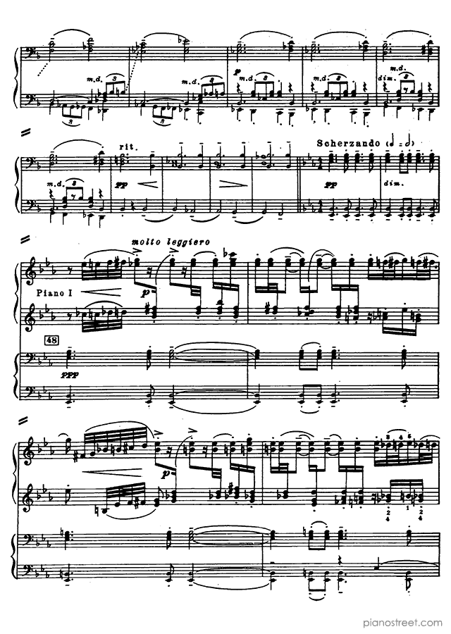 Unfortunately, after that special day, the concerto drifted into obscurity until resurrected by Vladimir Horowitz in whom Rachmaninoff had an ardent cheerleader. Rachmaninoff also made several cuts to the score in an attempt to make it more palatable to audiences. None of these cuts worked. Fortunately, Horowitz popularized the uncut version.