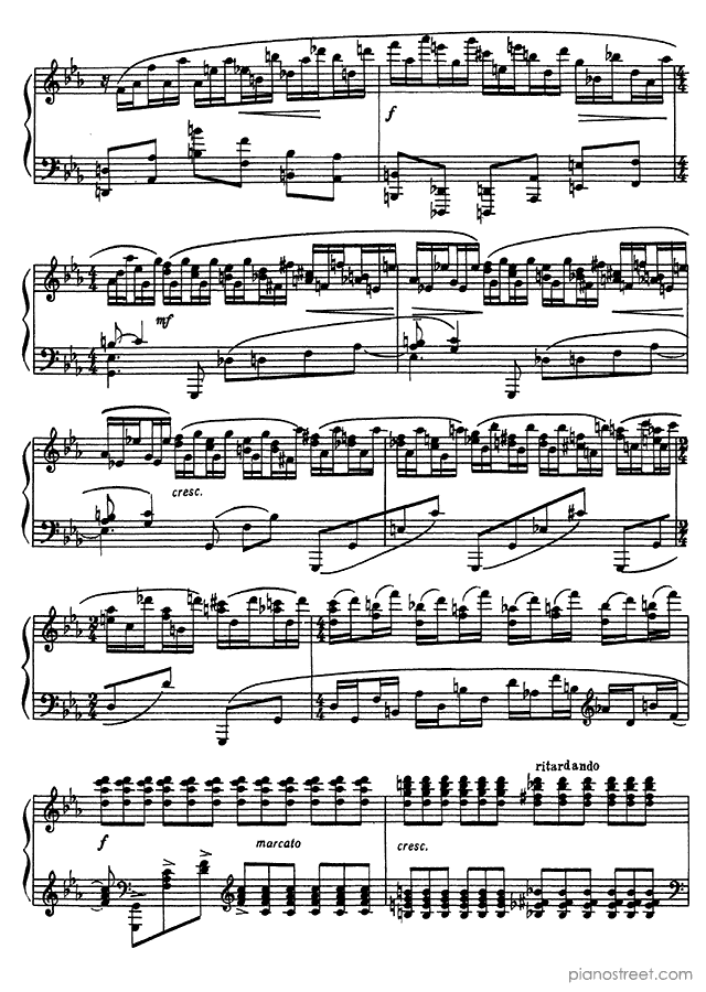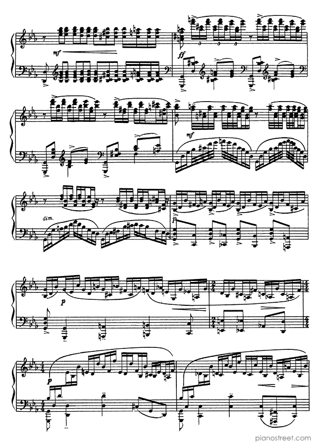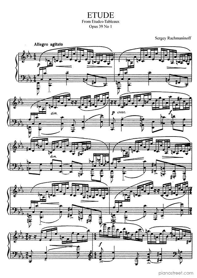 Classical piano sheet music by Rachmaninoff to download: Etude-Tableau: Allegro Agitato Op. 39 No. 1 in the key of This piece has difficulty level 8+ in the category Study
