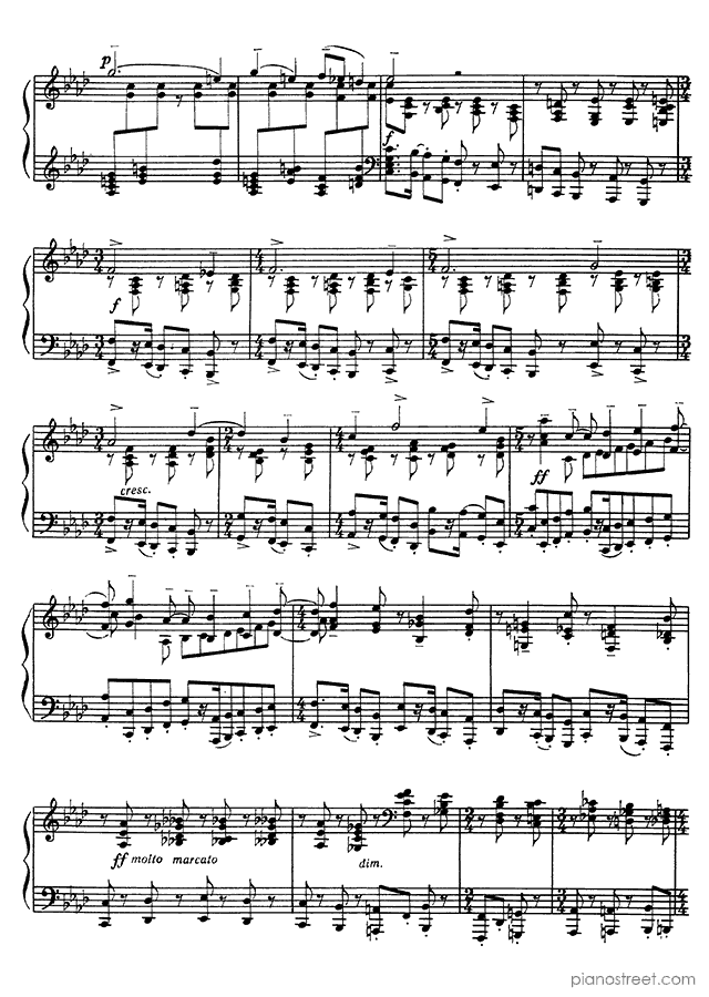 Etude-Tableau: Allegro Non Troppo in F Minor - Op. 33 No. 1 is a piano piece by the late romantic composer Sergey Rachmaninoff who lived between the years 1873 and 1943.