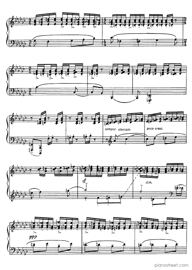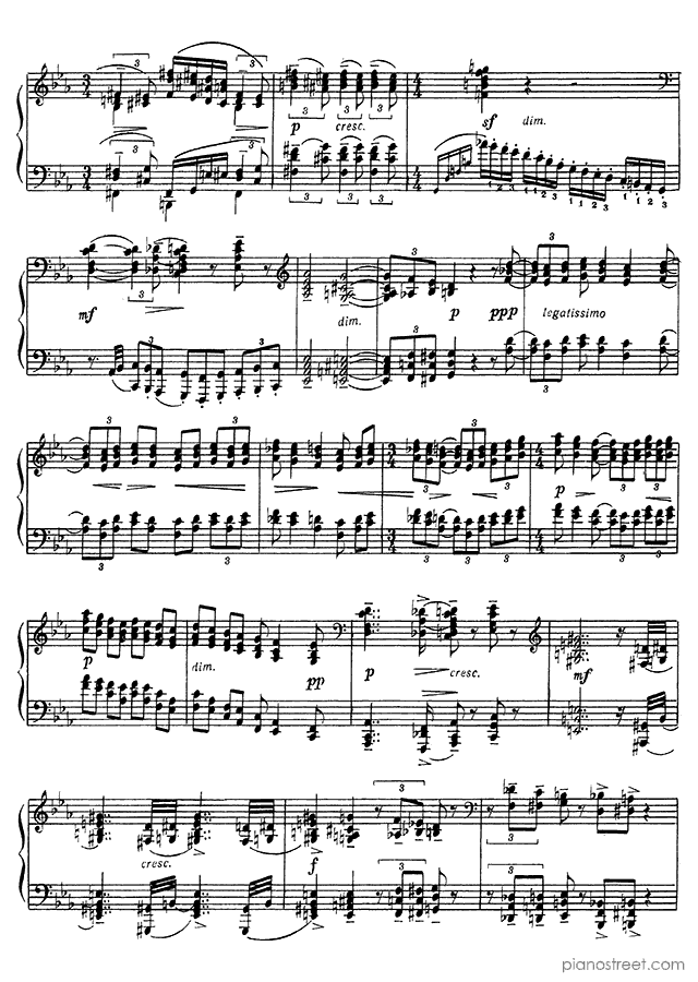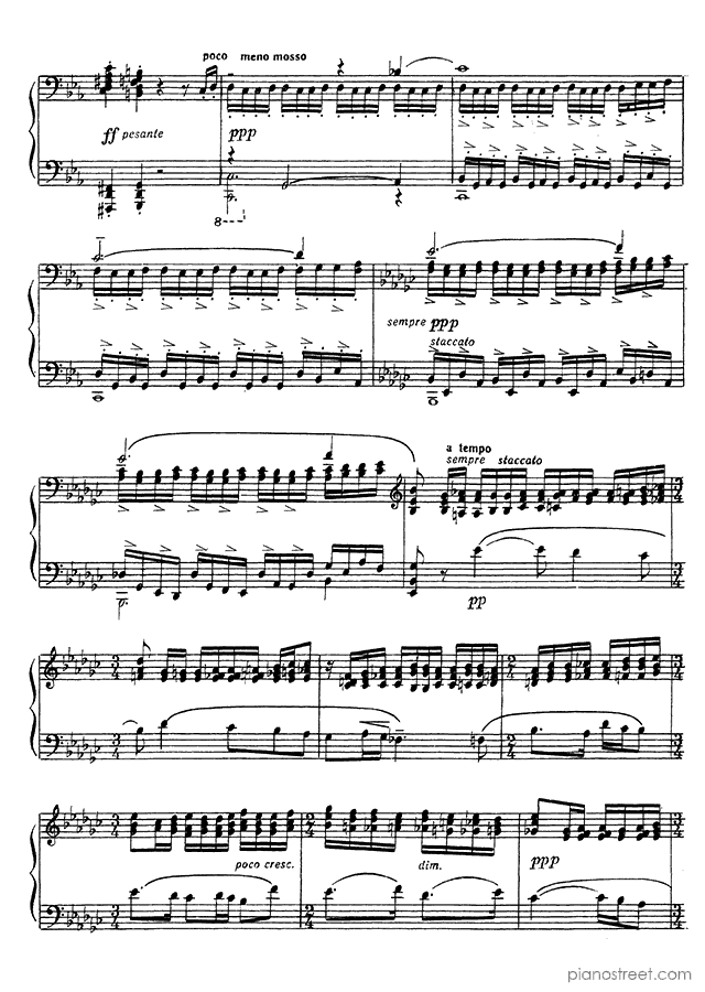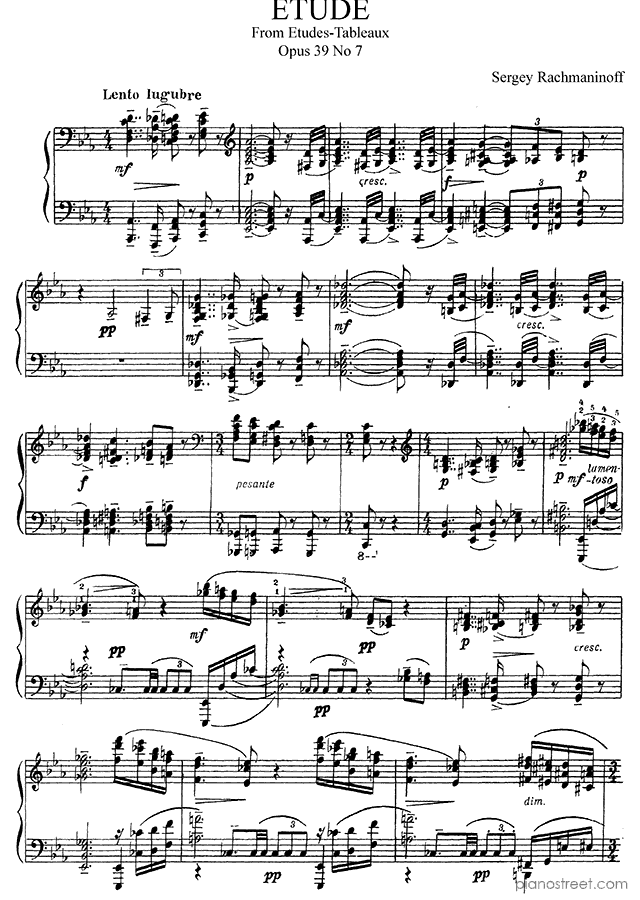 Etude-Tableau: Lento in C Minor - Op. 39 No. 7 is a piano piece by the late romantic composer Sergey Rachmaninoff who lived between the years 1873 and 1943.