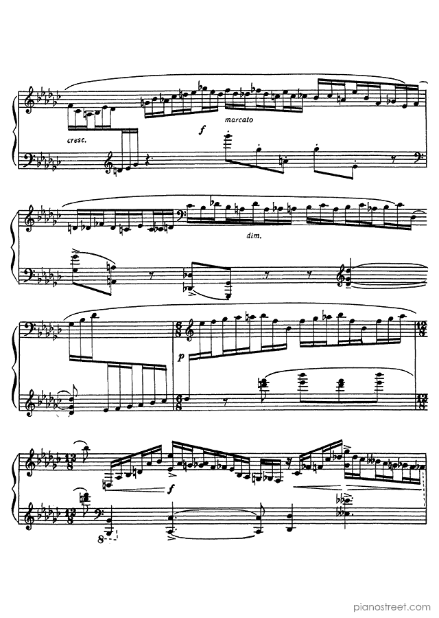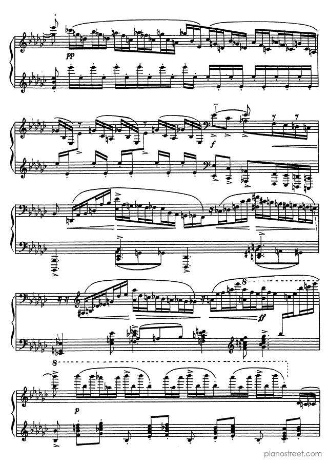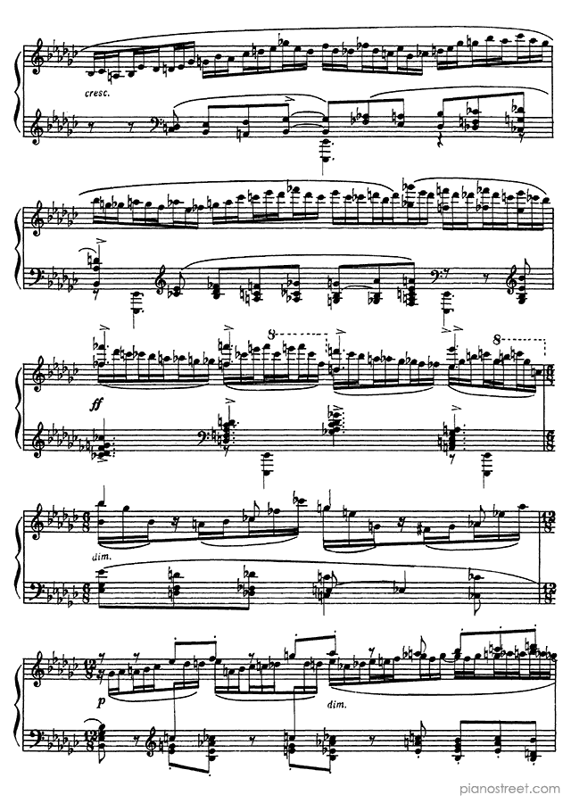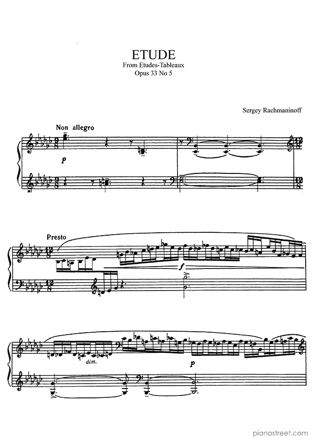 Etudes-Tableaux in E-flat Minor - Op. 33 No. 5 is a piano piece by the late romantic composer Sergey Rachmaninoff who lived between the years 1873 and 1943.