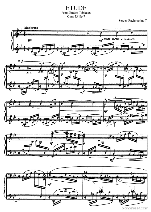 DOWNLOAD Etudes-Tableaux in G Minor Op. 33 No. 7 by Sergey Rachmaninoff (published in 1911) . High quality classical piano scores from the Piano Street sheet music library.