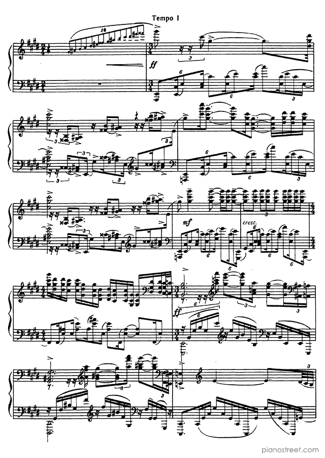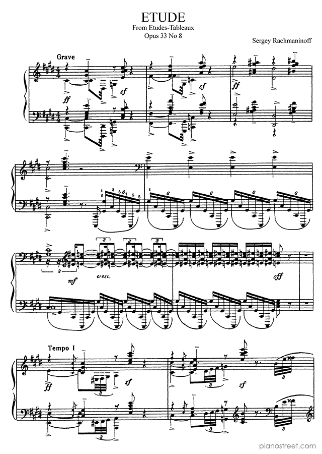 Downloadable piano sheet music from Etudes-Tableaux by Sergey Rachmaninoff to print: Etudes-Tableaux Op. 33 No. 8 in C-sharp Minor (published in 1911)
