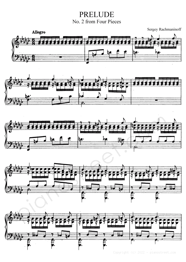 Prelude No. 2 in E-flat Minor, a composition by the late romantic composer Sergey Rachmaninoff. The piano score of this piece was first published in 1887 and is part of Four Pieces by Rachmaninoff.