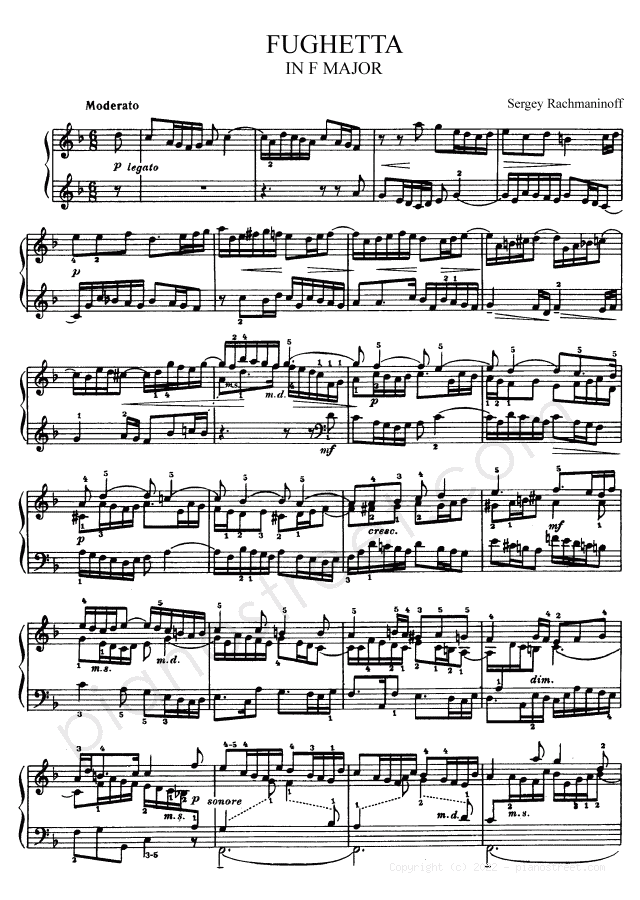 Downloadable piano sheet music by Sergey Rachmaninoff to print: Fughetta in F Major (published in 1899)