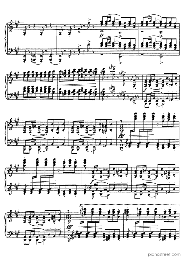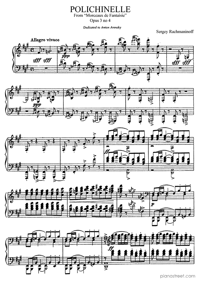 Downloadable piano sheet music from Morceaux de Fantaisie by Sergey Rachmaninoff to print: Polichinelle Op. 3 No. 4 (published in 1892)