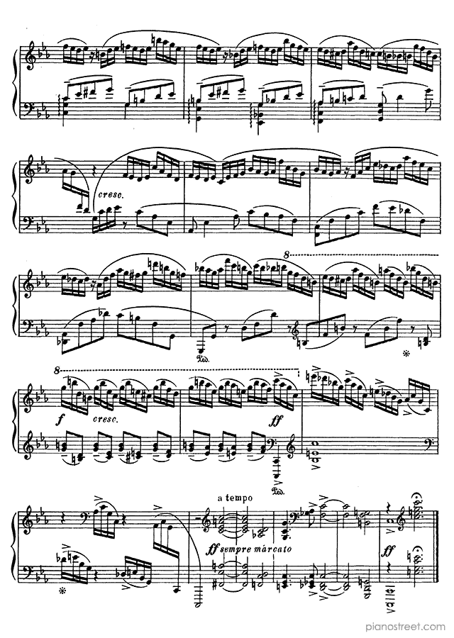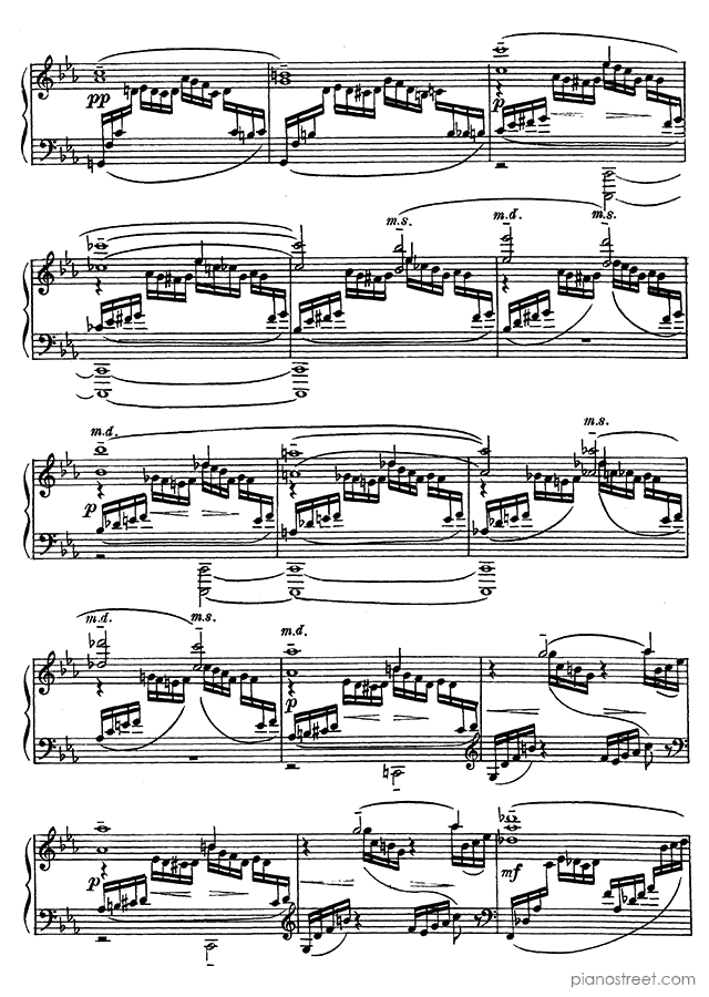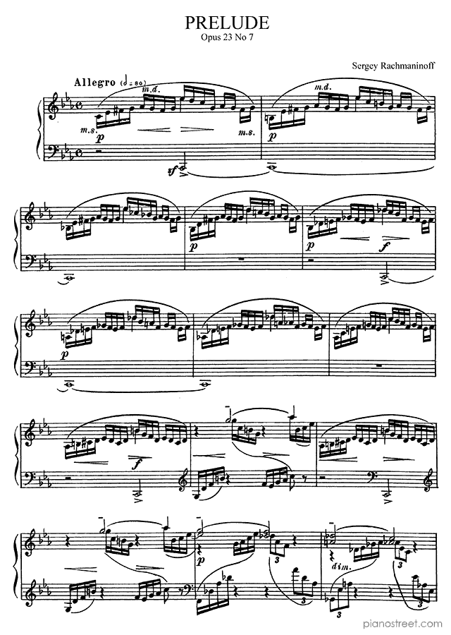 Downloadable piano sheet music from Preludes by Sergey Rachmaninoff to print: Prelude Op. 23 No. 7 in C Minor