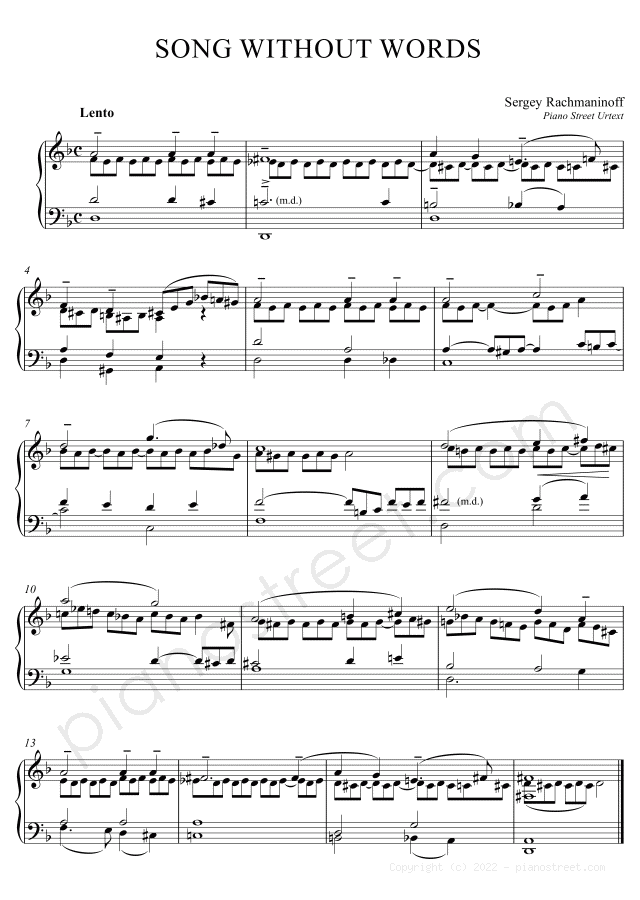 Rachmaninoff: Song Without Words in D Minor (published in 1887) . DOWNLOAD piano sheet music from Piano Street digital sheet music library.