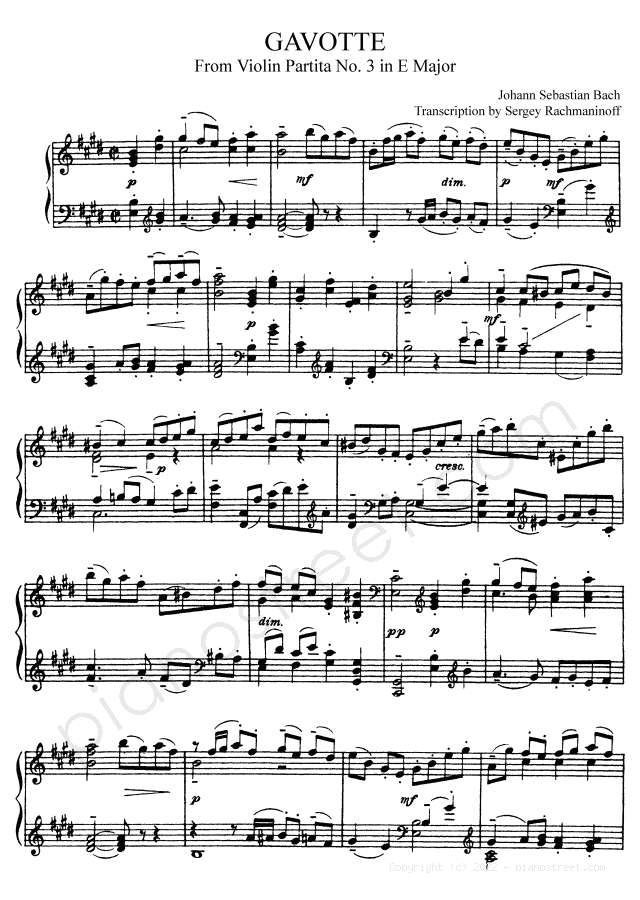 Bach: Gavotte in E Major, by the composer Sergey Rachmaninoff who lived from 1873 to 1943.