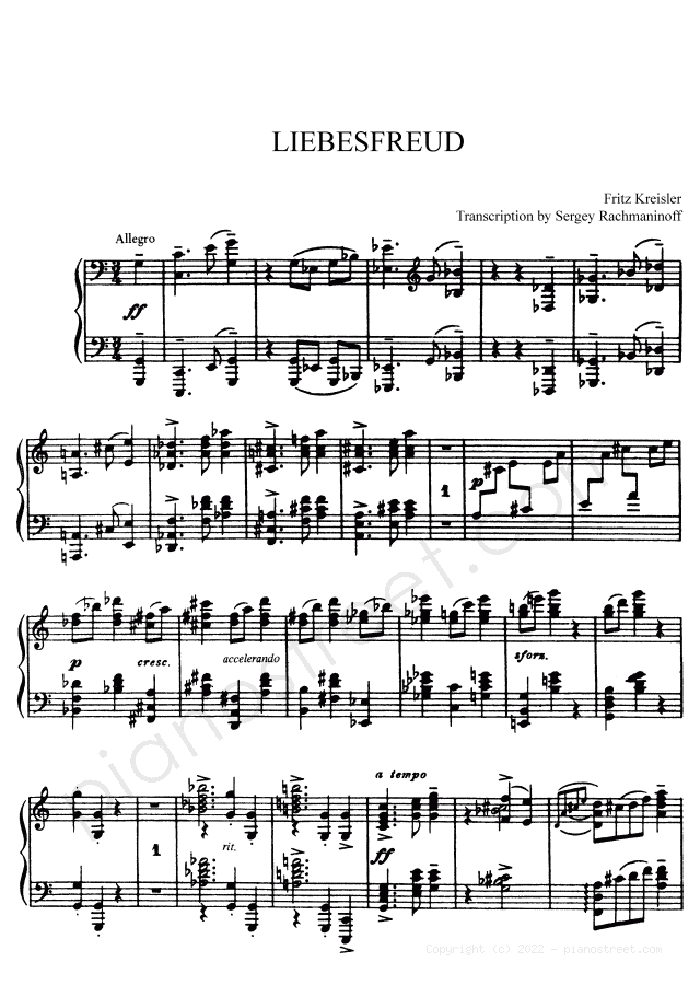 DOWNLOAD: Sergey Rachmaninoff - Kreisler: Liebesfreud in C Major ( from Transcriptions by Rachmaninoff). Piano sheet music to print immediately or to view in mobile devices.