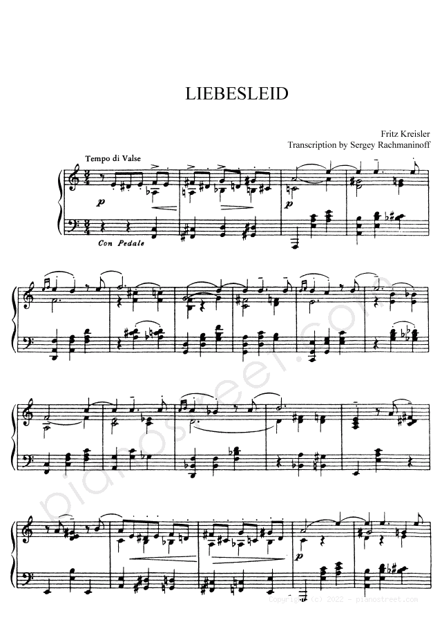 Kreisler: Liebesleid in A Minor - is a piano piece by the late romantic composer Sergey Rachmaninoff who lived between the years 1873 and 1943.