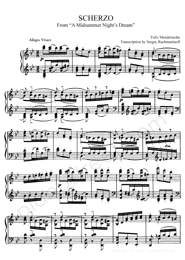 Sergey Rachmaninoff: Mendelssohn: Scherzo in G Minor from Transcriptions - piano sheet music to print instantly. This piece is level 8+ and was composed during the Late Romantic period.