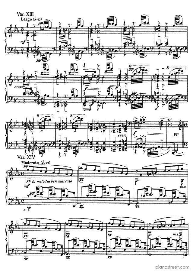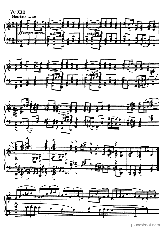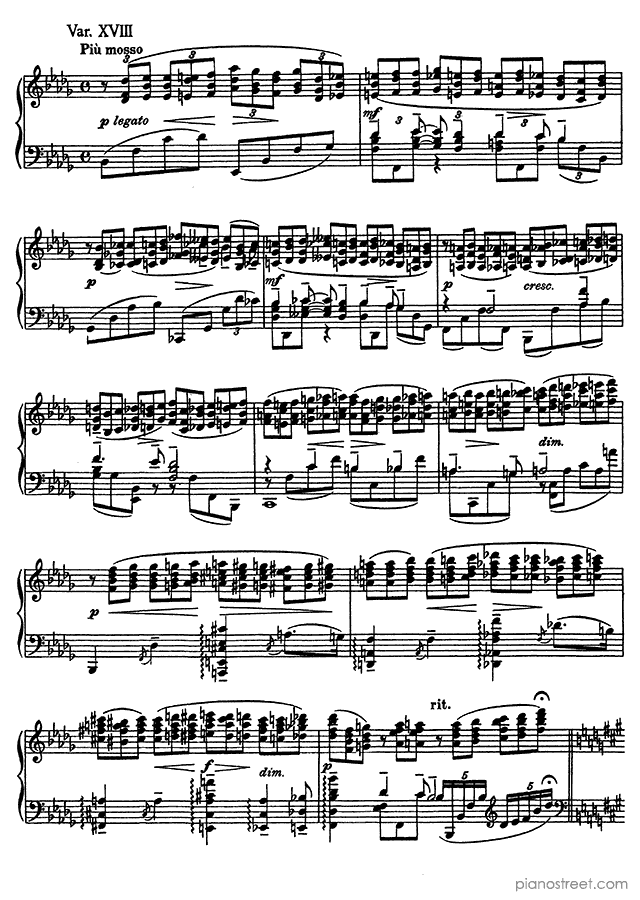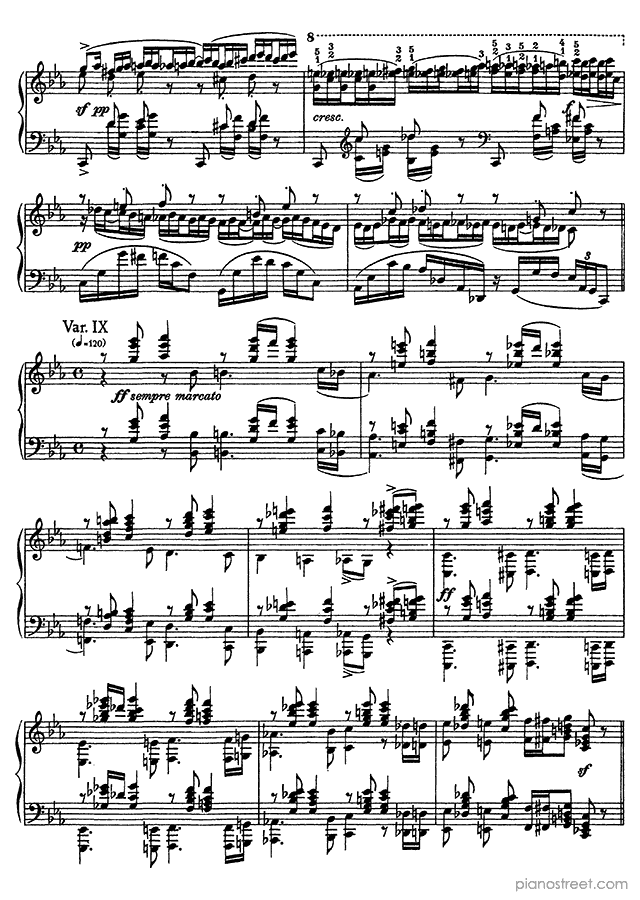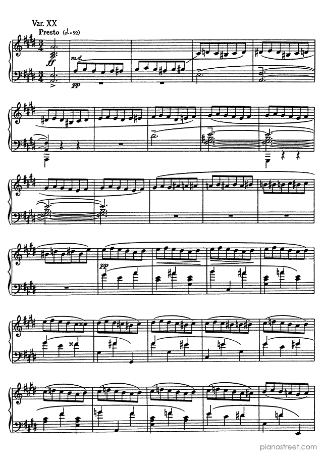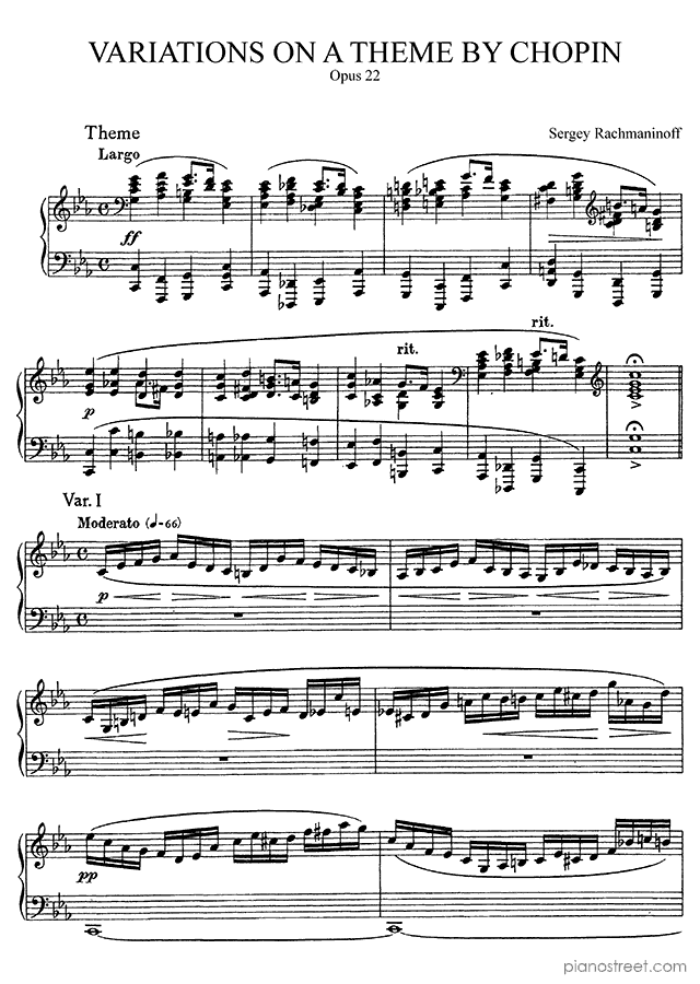 Late Romantic piano sheet music by Sergey Rachmaninoff to download and print instantly: Variations on a Theme by Chopin Op. 22 in the key of . Level 8+, compositional type: Variations (published in 1903)