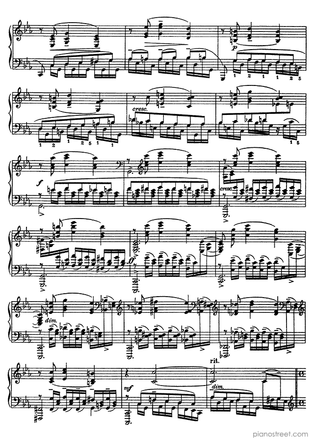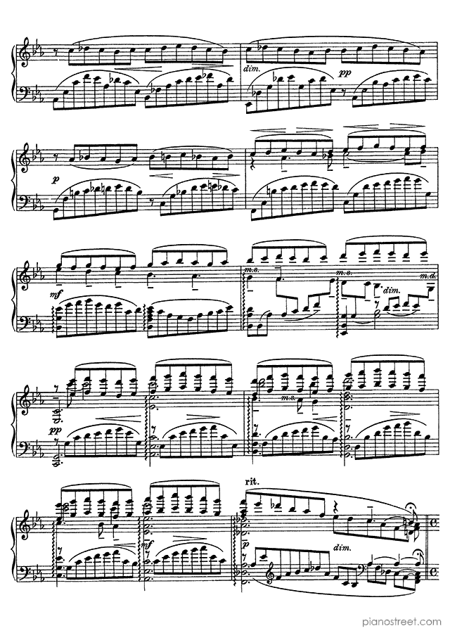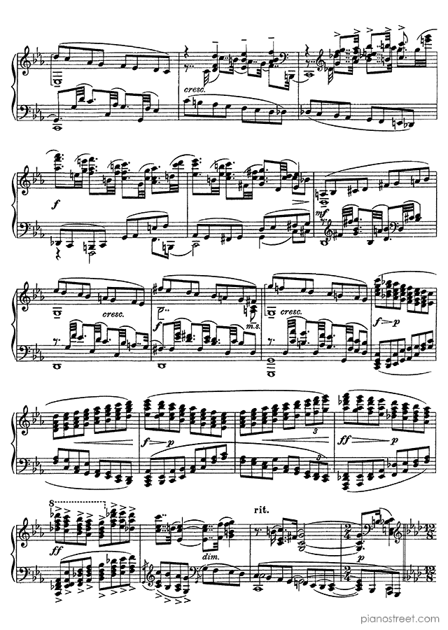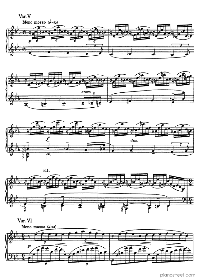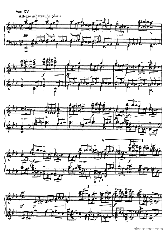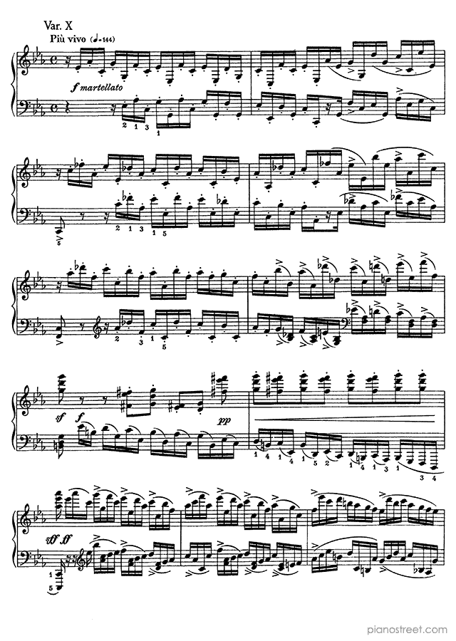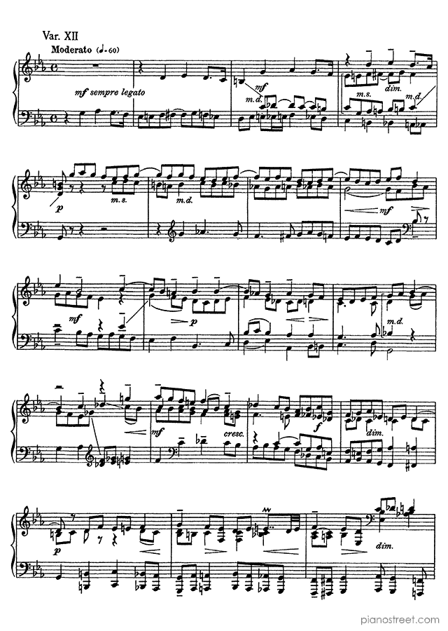 Late Romantic piano sheet music by Sergey Rachmaninoff to download and print instantly: Variations on a Theme by Chopin Op. 22 in the key of . Level 8+, compositional type: Variations (published in 1903)