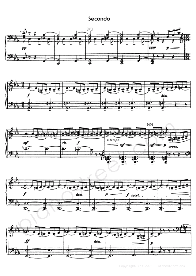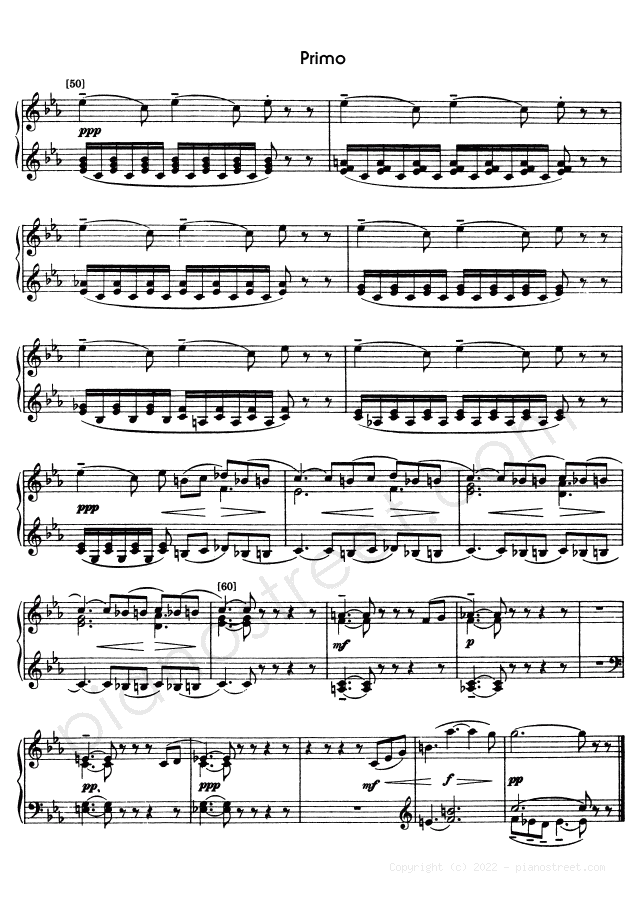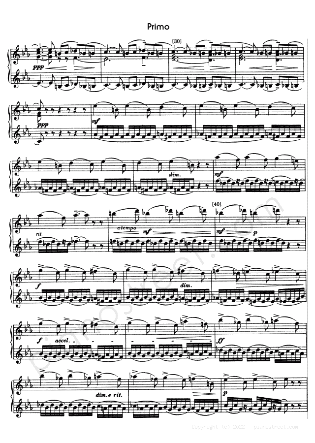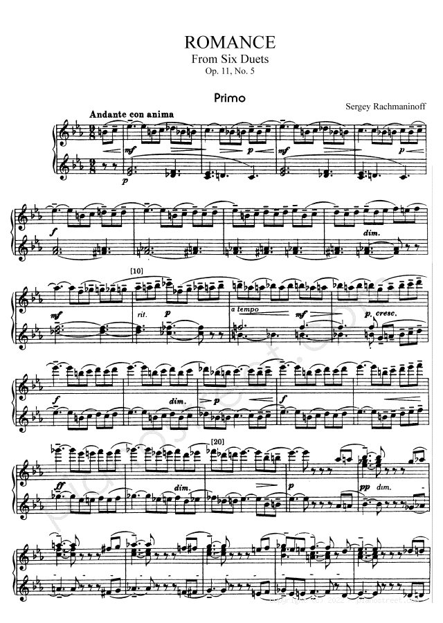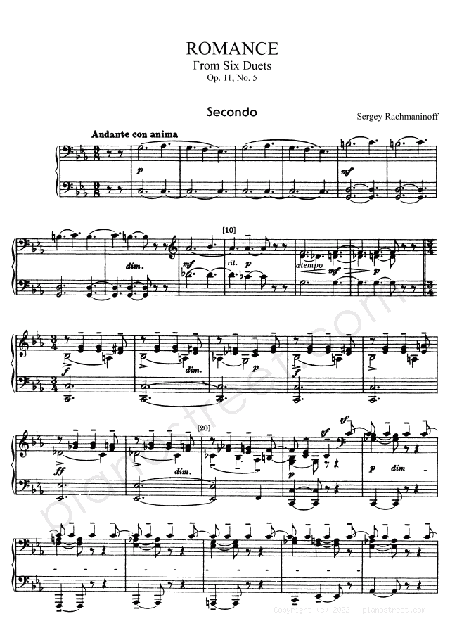 DOWNLOAD: Sergey Rachmaninoff - 6 Duets: Romance - for four hands Op. 11 No. 5 in C Minor ( from Works for four hands, six hands, and two pianos by Rachmaninoff). Piano sheet music to print immediately or to view in mobile devices.