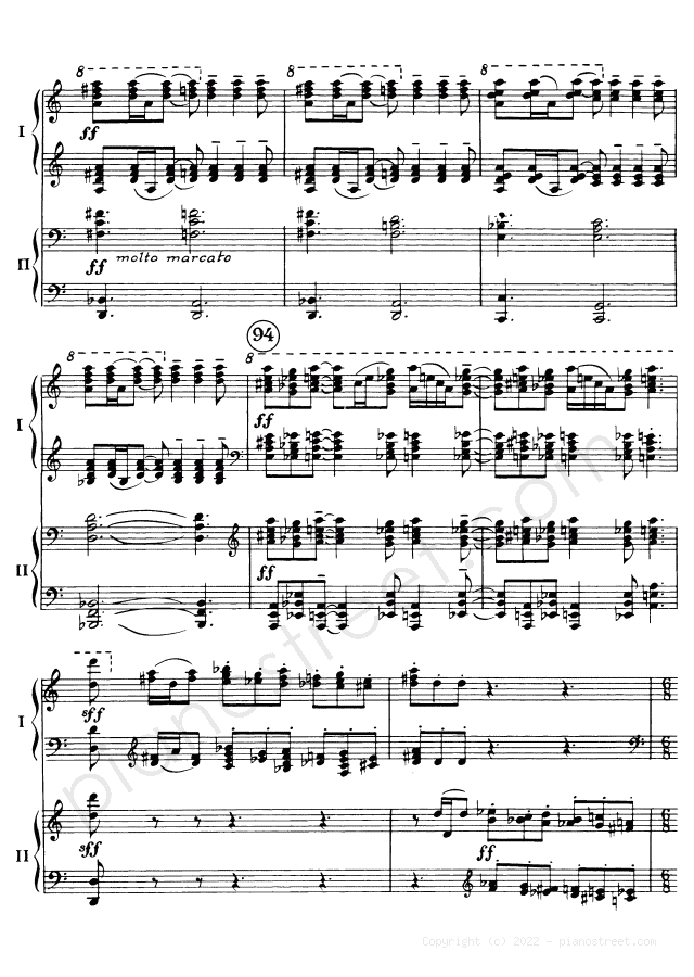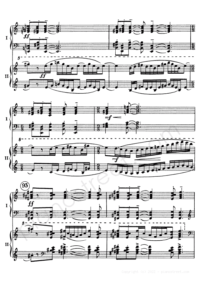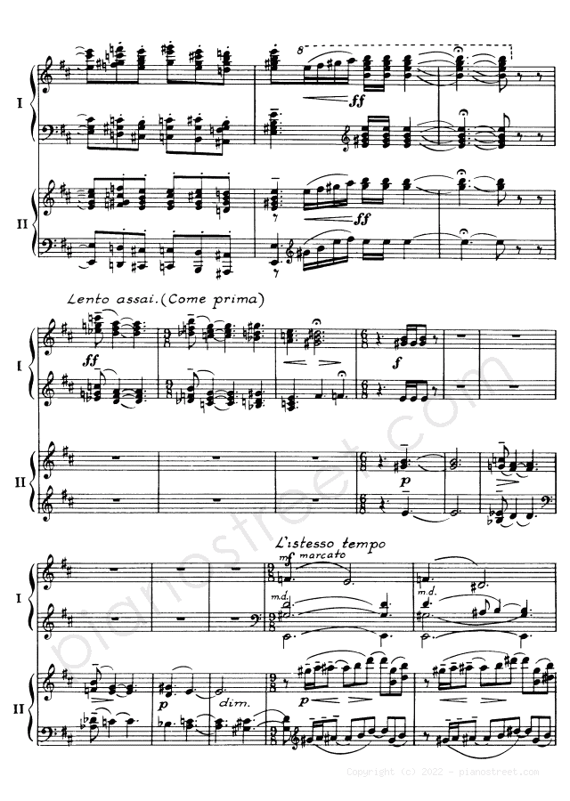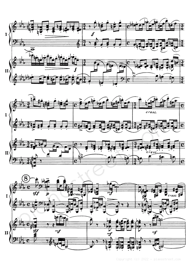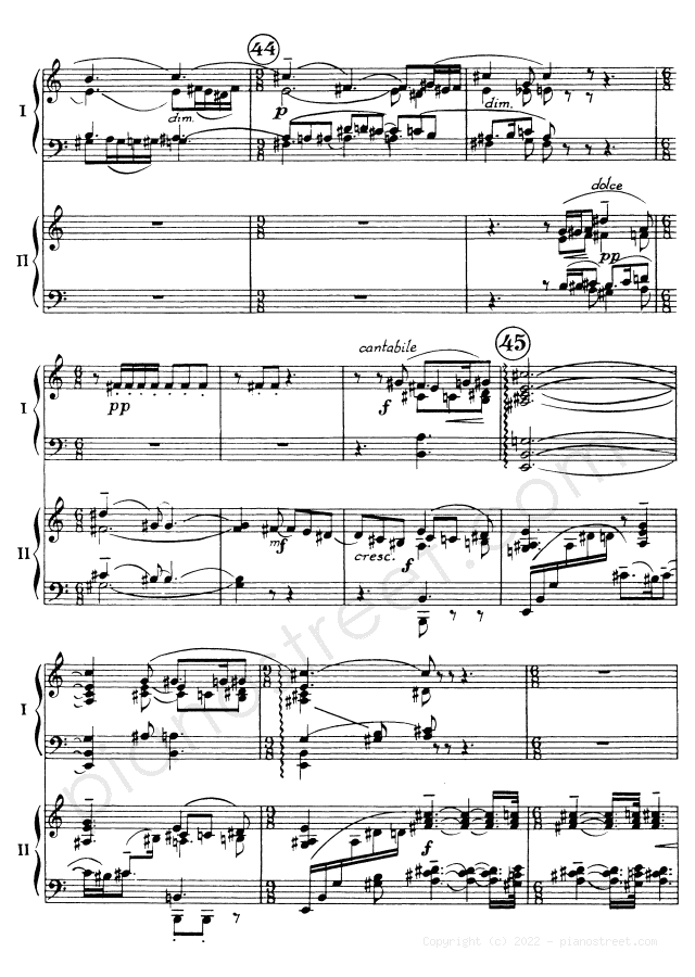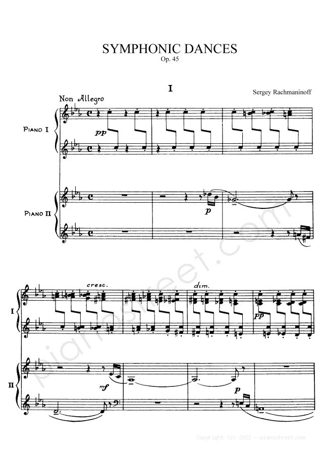 DOWNLOAD Symphonic Dances - for two pianos Op. 45 by Sergey Rachmaninoff (published in 1940) . High quality classical piano scores from the Piano Street sheet music library.